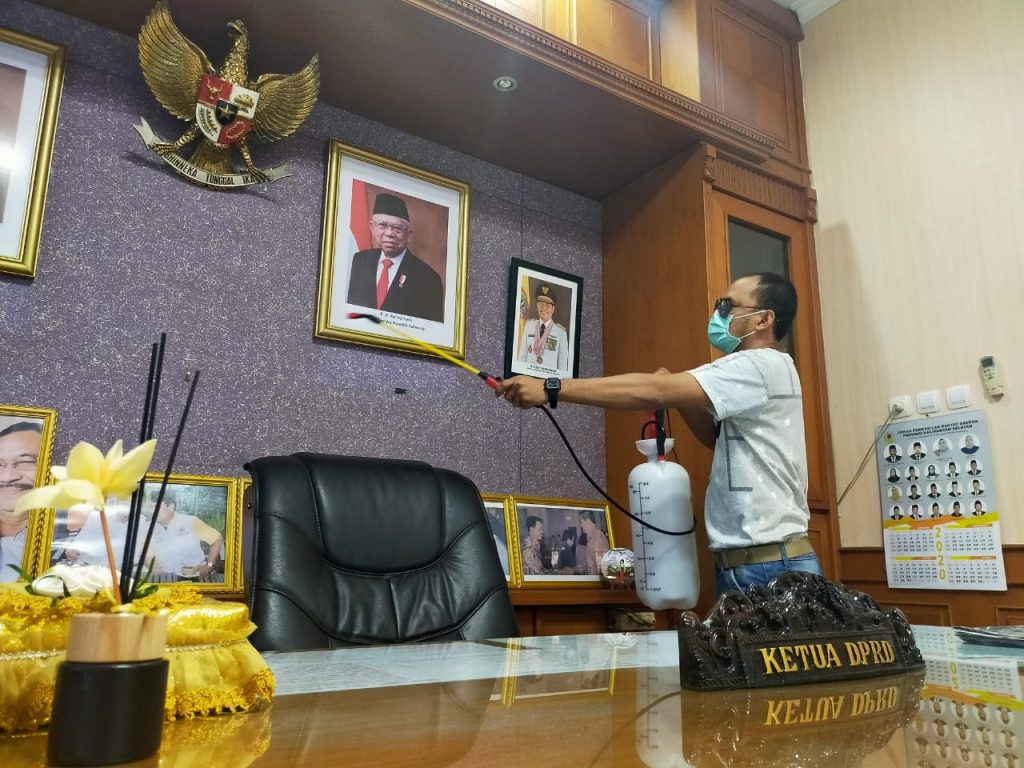 Hari Pertama WFH, DPRD Kalsel Kembali Disemprot Disinfektan