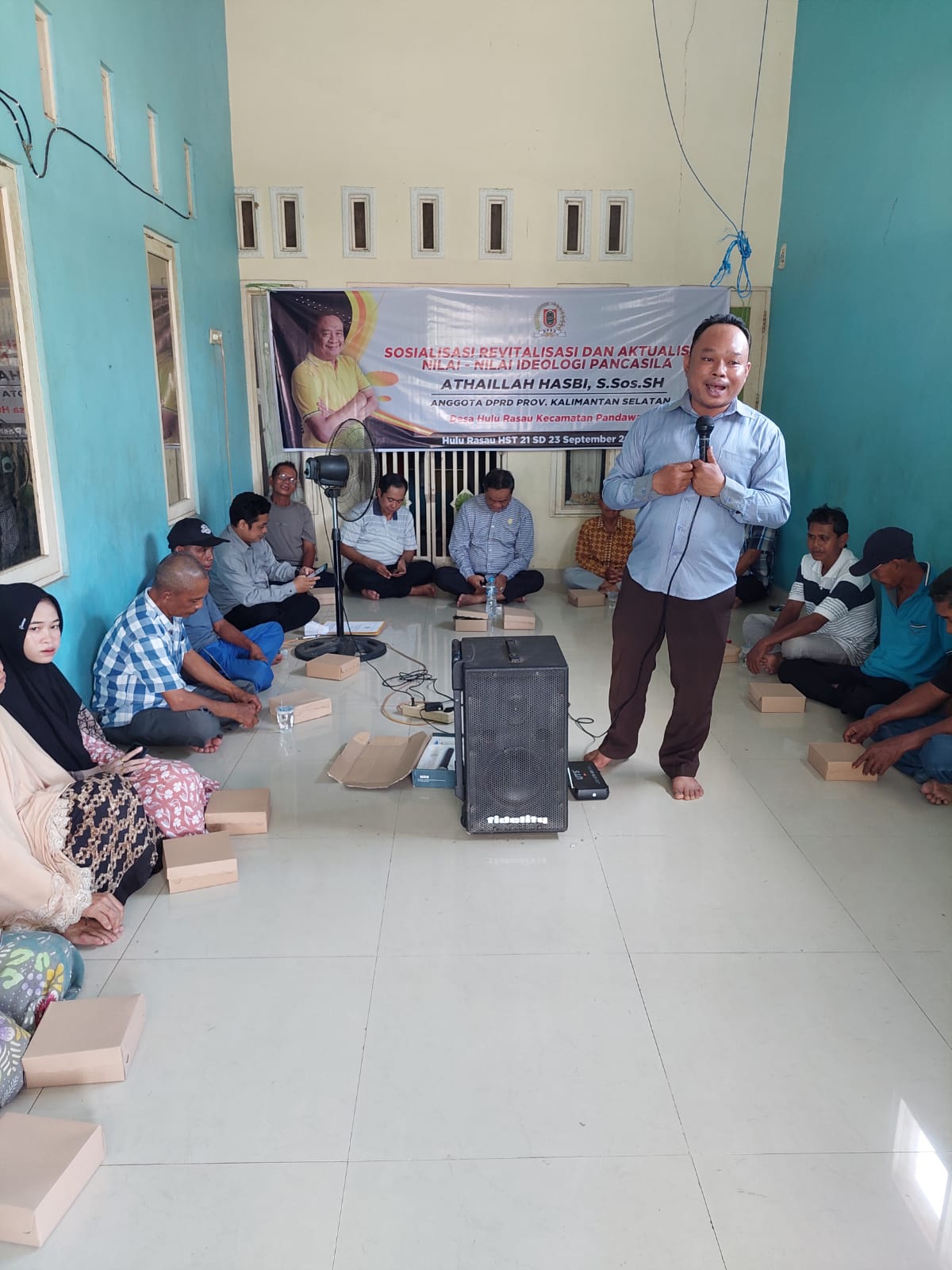 Anggota Komisi IV Bidang Kesra DPRD Kalsel tersebut melakukan sosialisasi Revitalisasi dan Aktualisasi Nilai-Nilai Pancasila kali ini (22/9/23) di Desa Hulu Rasau Kecamatan Pandawan Kabupaten Hulu Sungai (HST).