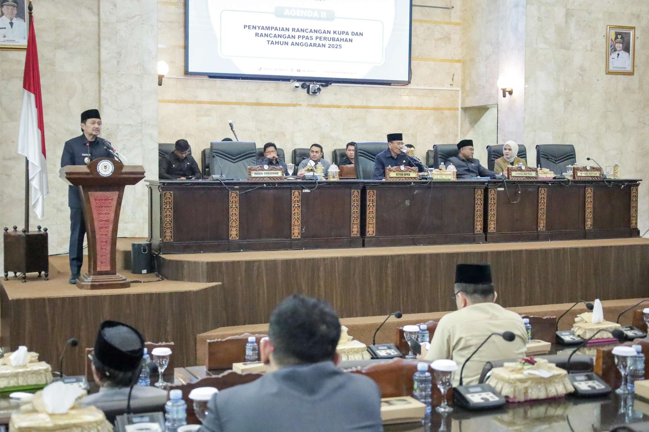Dalam pidatonya, Wakil Gubernur menyampaikan bahwa penyusunan KUPA dan PPAS Perubahan dilakukan secara cermat, berpedoman pada dokumen Rencana Kerja Pemerintah Daerah (RKPD) Tahun 2025, serta mengacu pada Peraturan Pemerintah Nomor 12 Tahun 2019 tentang Pengelolaan Keuangan Daerah.