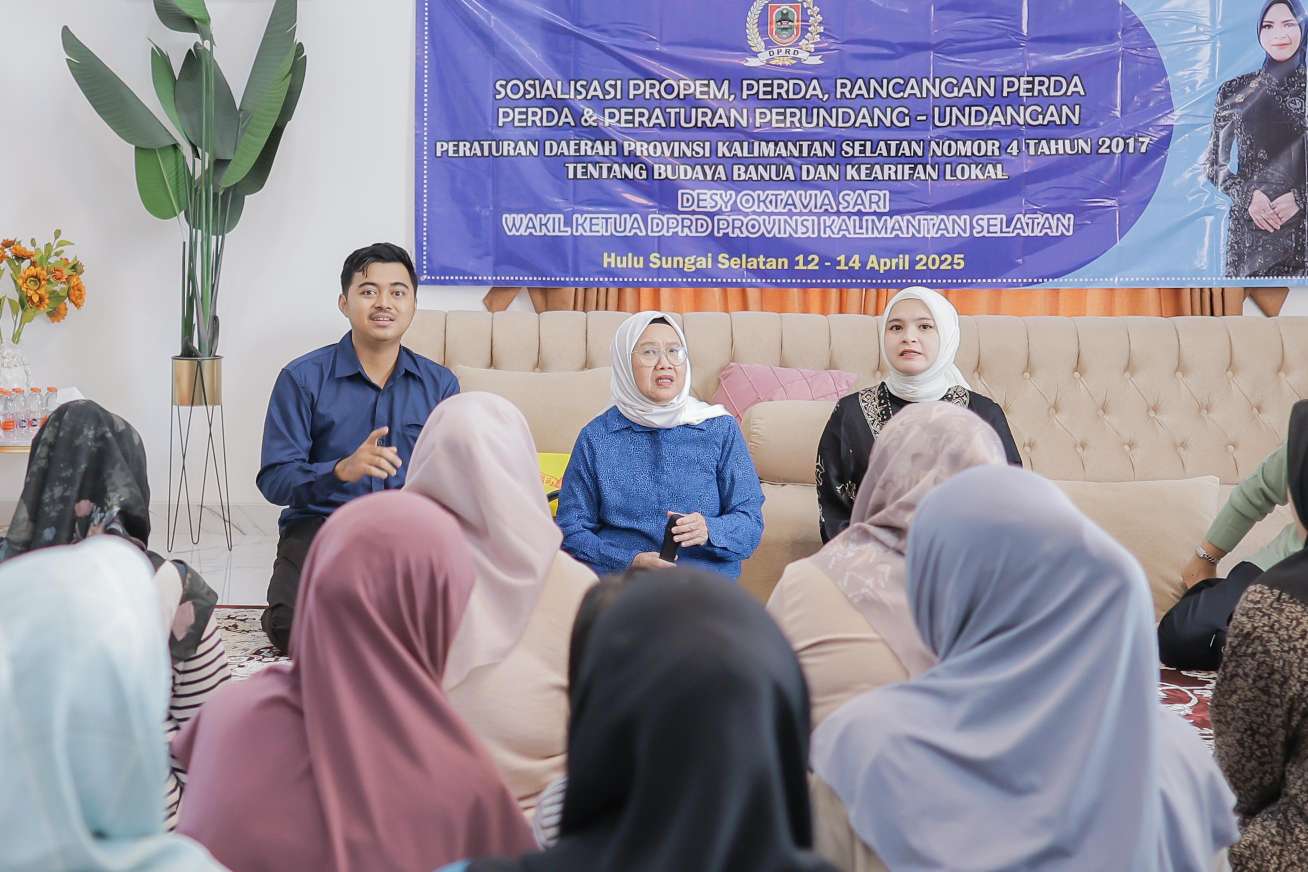 Hulu Sungai Selatan – Wakil Ketua DPRD Provinsi Kalimantan Selatan, Desy Oktavia Sari, menggelar Sosialisasi Peraturan Daerah (Sosper) di Kabupaten Hulu Sungai Selatan selama 12 hingga 14 April 2025. Kegiatan ini menyasar dua kecamatan, yakni Sungai Raya dan Kandangan, dengan melibatkan kader PKK serta tokoh masyarakat setempat.