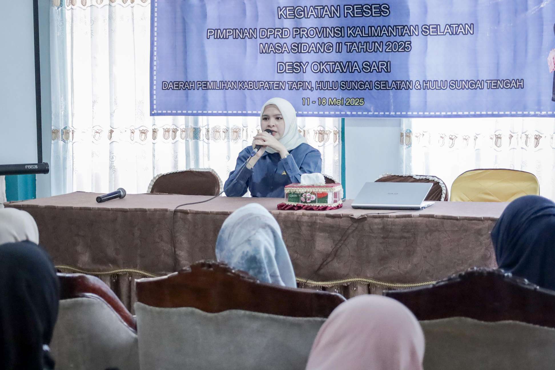 Desy menegaskan, seluruh aspirasi akan ditindaklanjuti sesuai kewenangan, “Untuk yang menjadi ranah kabupaten akan kami sampaikan ke pemerintah kabupaten, dan yang menjadi ranah provinsi ini yang nantinya akan dijadikan pokok-pokok pikiran DPRD yang nantinya akan diusulkan ke pemerintah Provinsi Kalsel.”