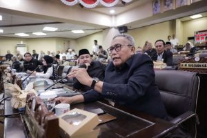 Dalam rapat tersebut, Gubernur Kalsel H. Muhidin melalui Sekretaris Daerah Provinsi Kalsel, Muhammad Syarifuddin, M.Pd., menyampaikan pidato gubernur mengenai LKPj akhir Tahun Anggaran 2025 di hadapan pimpinan dan anggota DPRD Kalsel.