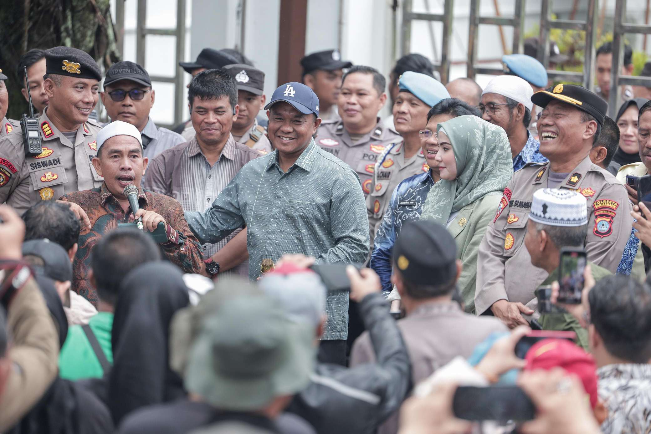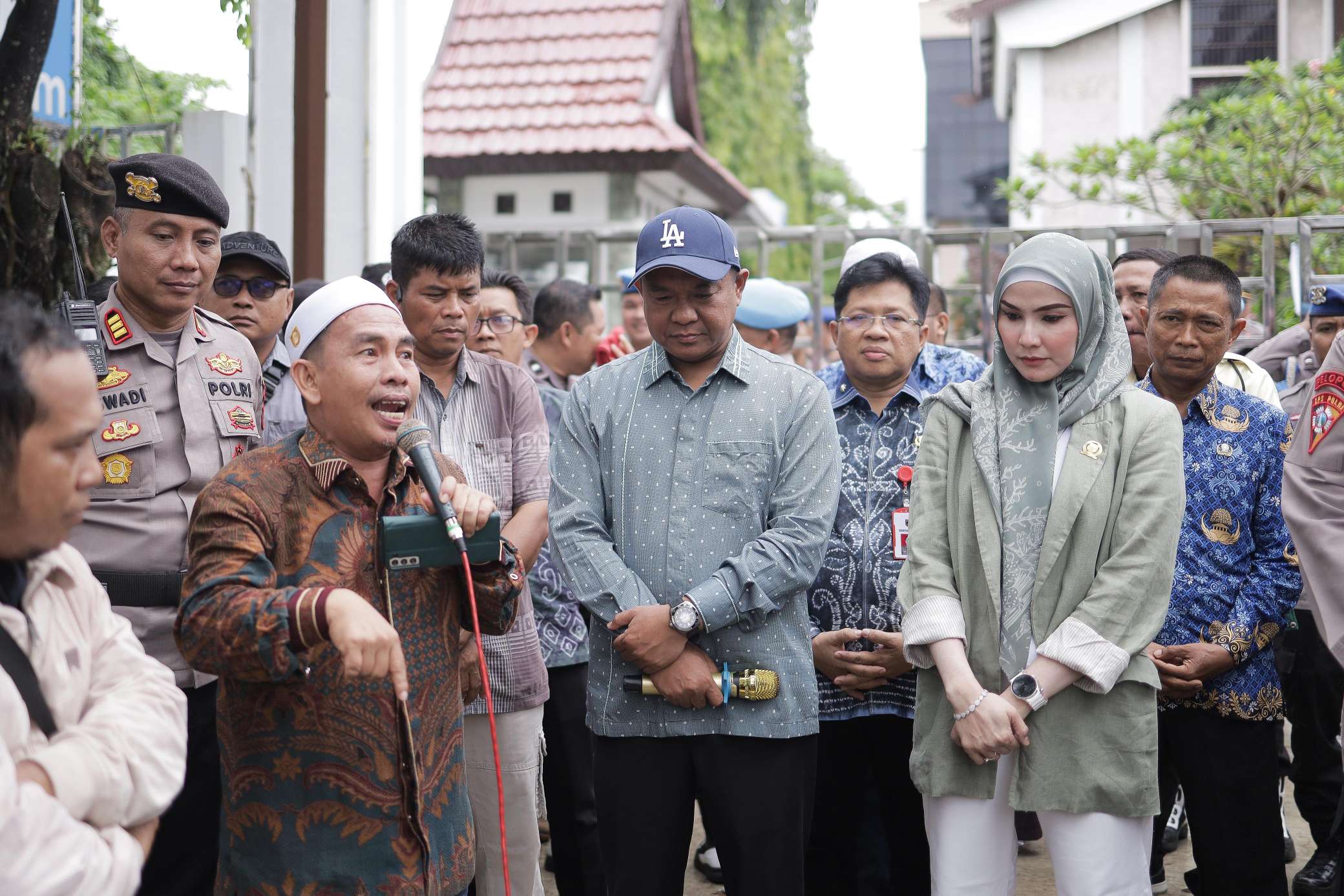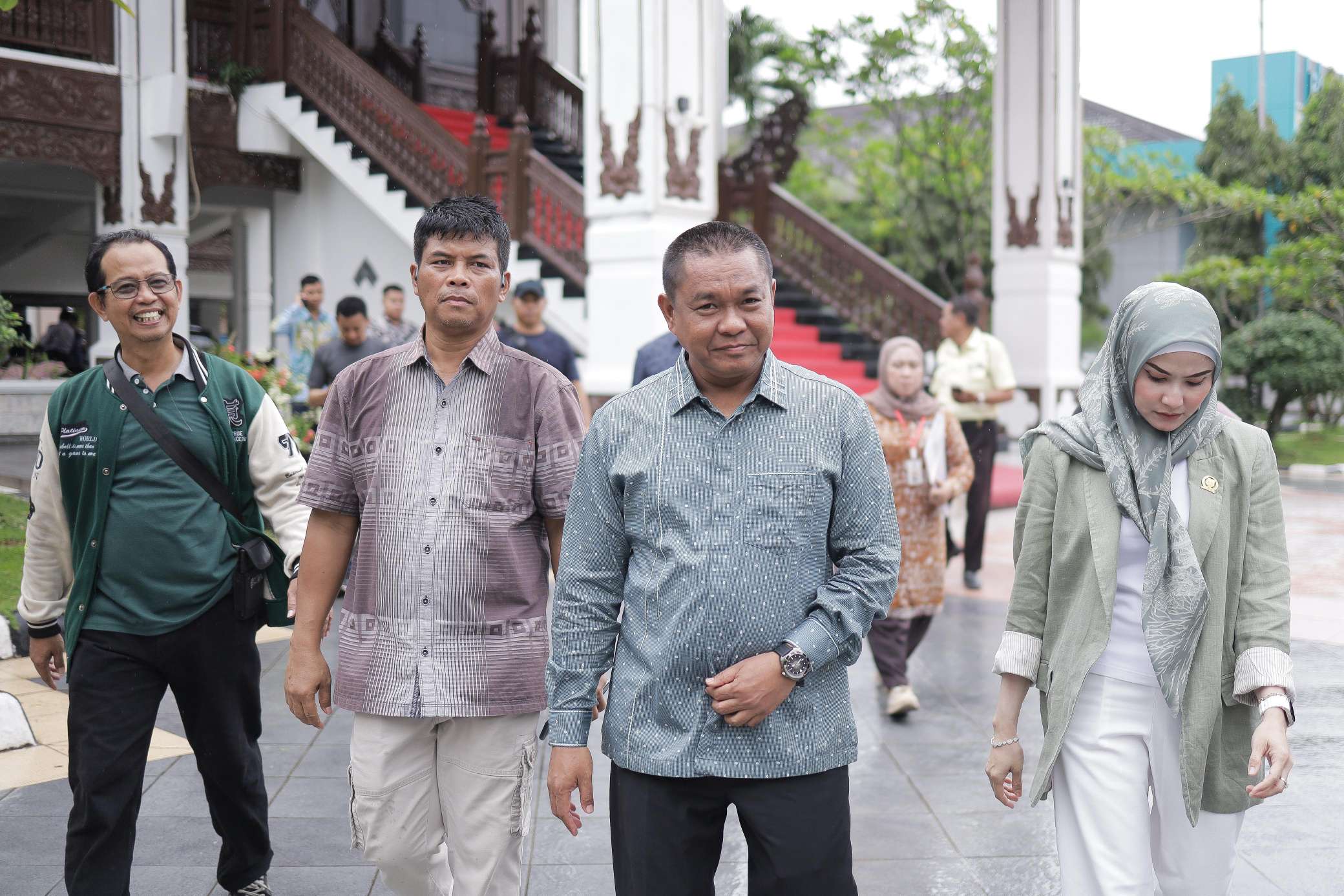 Wakil Ketua DPRD Provinsi Kalsel, H. Kartoyo, S.M. dan Ketua Komisi III DPRD Provinsi Kalsel, Apt. Mustaqimah, S.Farm., M.Si. menerima Puluhan massa yang tergabung dalam Sahabat Anti Kecurangan Bersama (SAKUTU) yang melakukan aksi damai di depan Gedung DPRD Kalsel, Kamis (17/04/25).