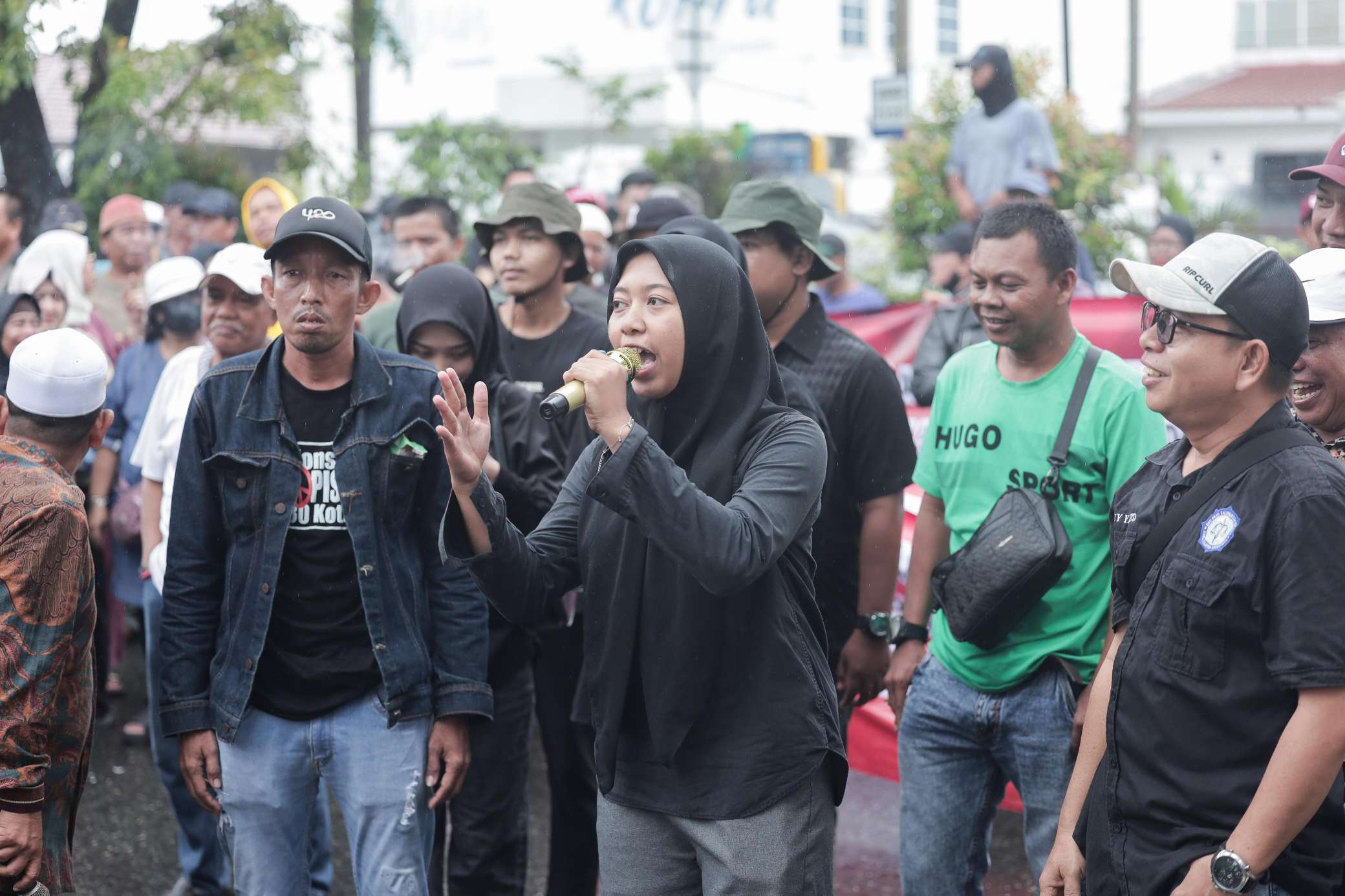 Mereka menyuarakan sejumlah tuntutan, mulai dari penolakan angkutan tambang yang melintas di jalan nasional hingga desakan untuk membatalkan pembangunan stadion internasional di KM 17 sebelum renovasi Stadion 17 Mei diselesaikan.