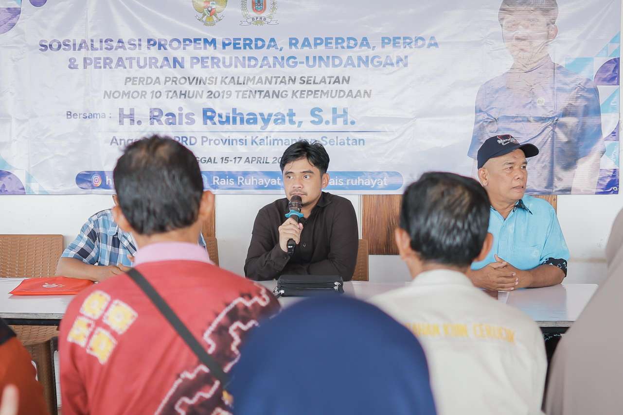 Barito Kuala – Ketua Komisi I Dewan Perwakilan Rakyat Daerah (DPRD) Provinsi Kalimantan Selatan (Kalsel), H. Rais Ruhayat, S.H., melaksanakan kegiatan Sosialisasi Peraturan Daerah (Perda) Nomor 10 Tahun 2019 tentang Kepemudaan pada Rabu, (16/04/25) siang di Kabupaten Barito Kuala.