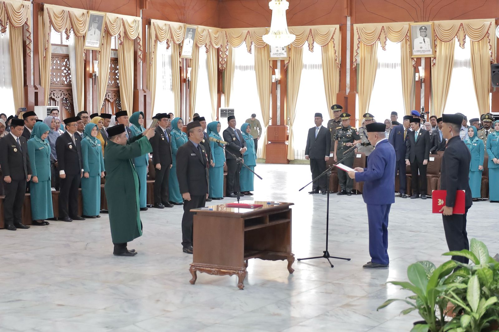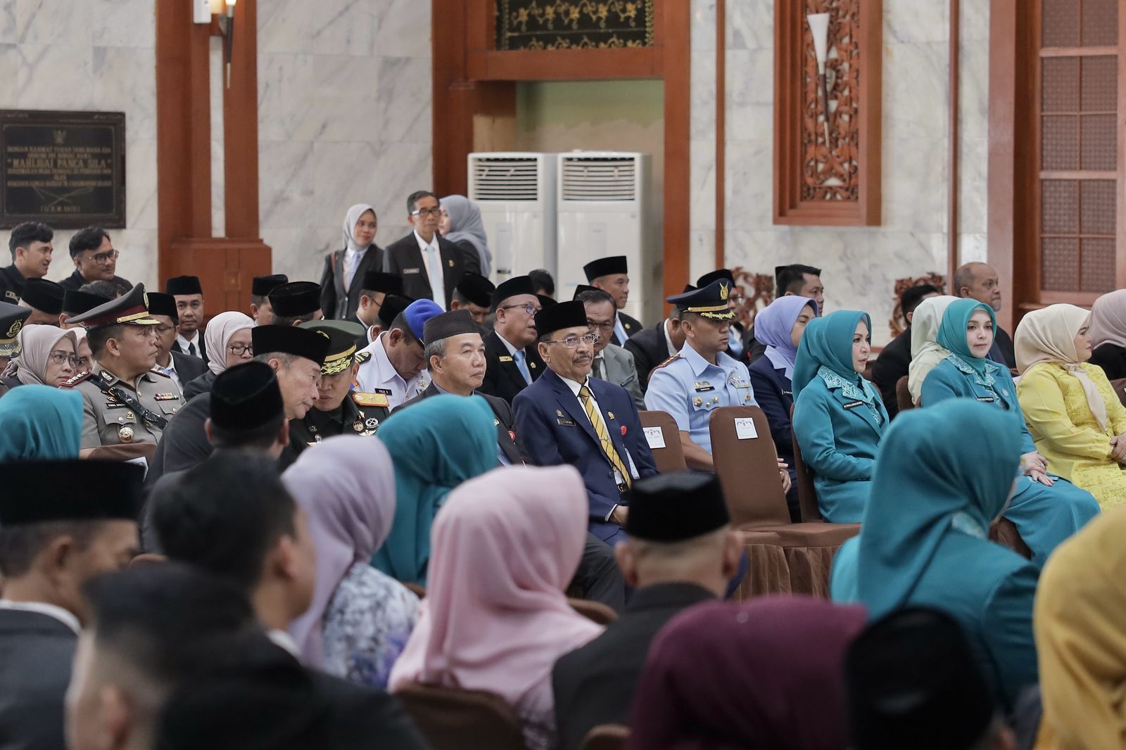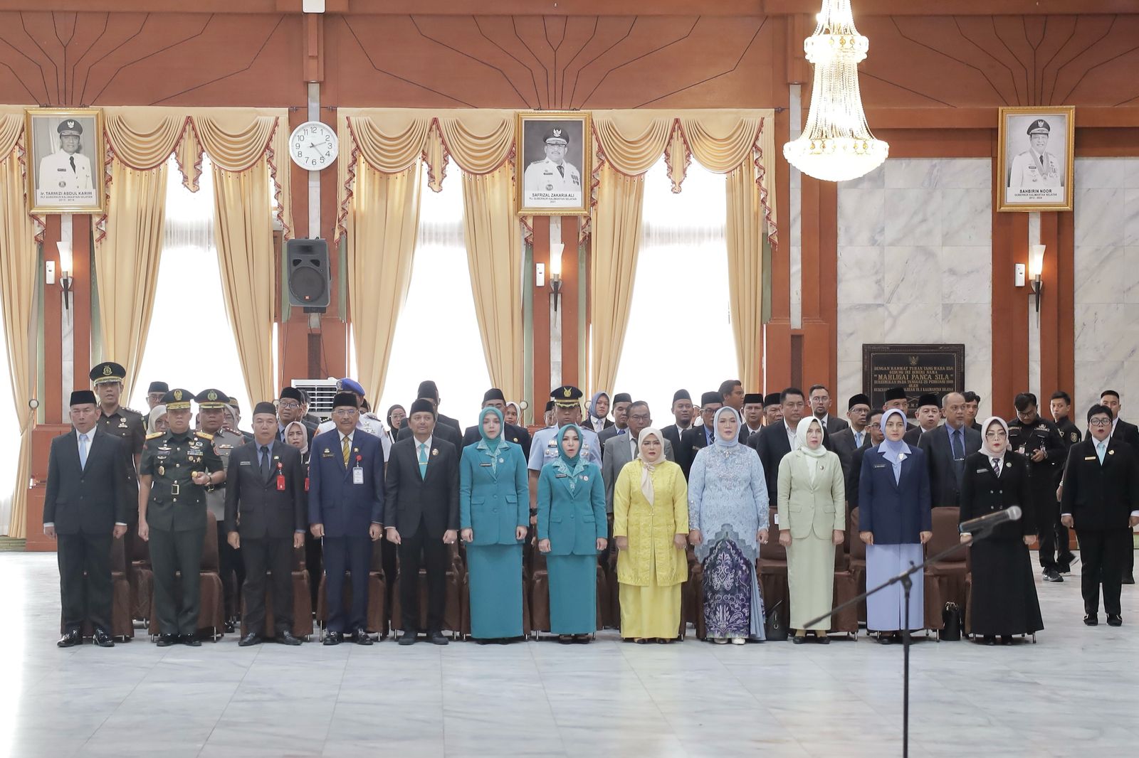 Banjarmasin – Ketua DPRD Provinsi Kalimantan Selatan (Kalsel) H. Supian HK bersama Istri Hj. Farida Supian HK hadiri Pelantikan Penjabat (Pj) Sekretaris Daerah (Sekda) Kalsel bertempat di Gedung Mahligai Pancasila pada Rabu (05/03/2025) Siang.