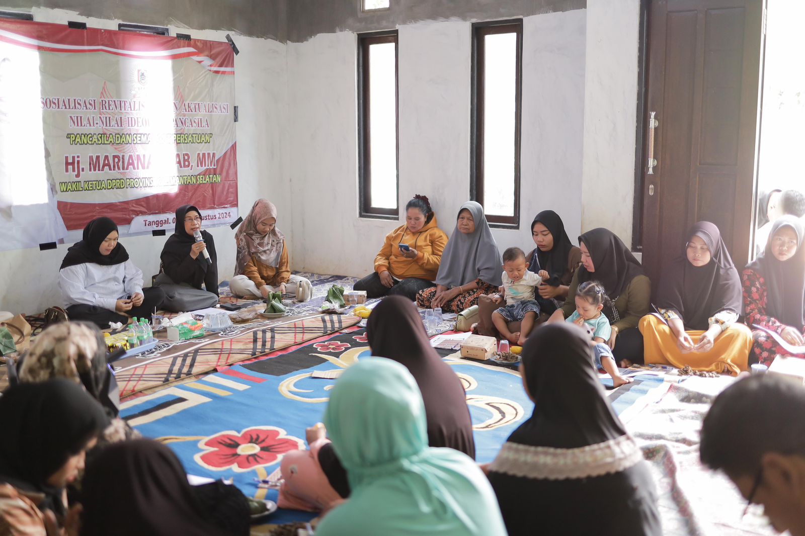 Tanah Laut – Wakil Ketua Dewan Perwakilan Rakyat Daerah (DPRD) Provinsi Kalimantan Selatan (Kalsel), Hj. Mariana, S. AB., M.M. menggelar Sosialisasi Revitalisasi dan Aktualisasi Nilai-nilai Ideologi Pancasila (Sosrev), Jum’at (9/8), bertempat di Desa Tirta Jaya, Kecamatan Bajuin, Kabupaten Tanah Laut.