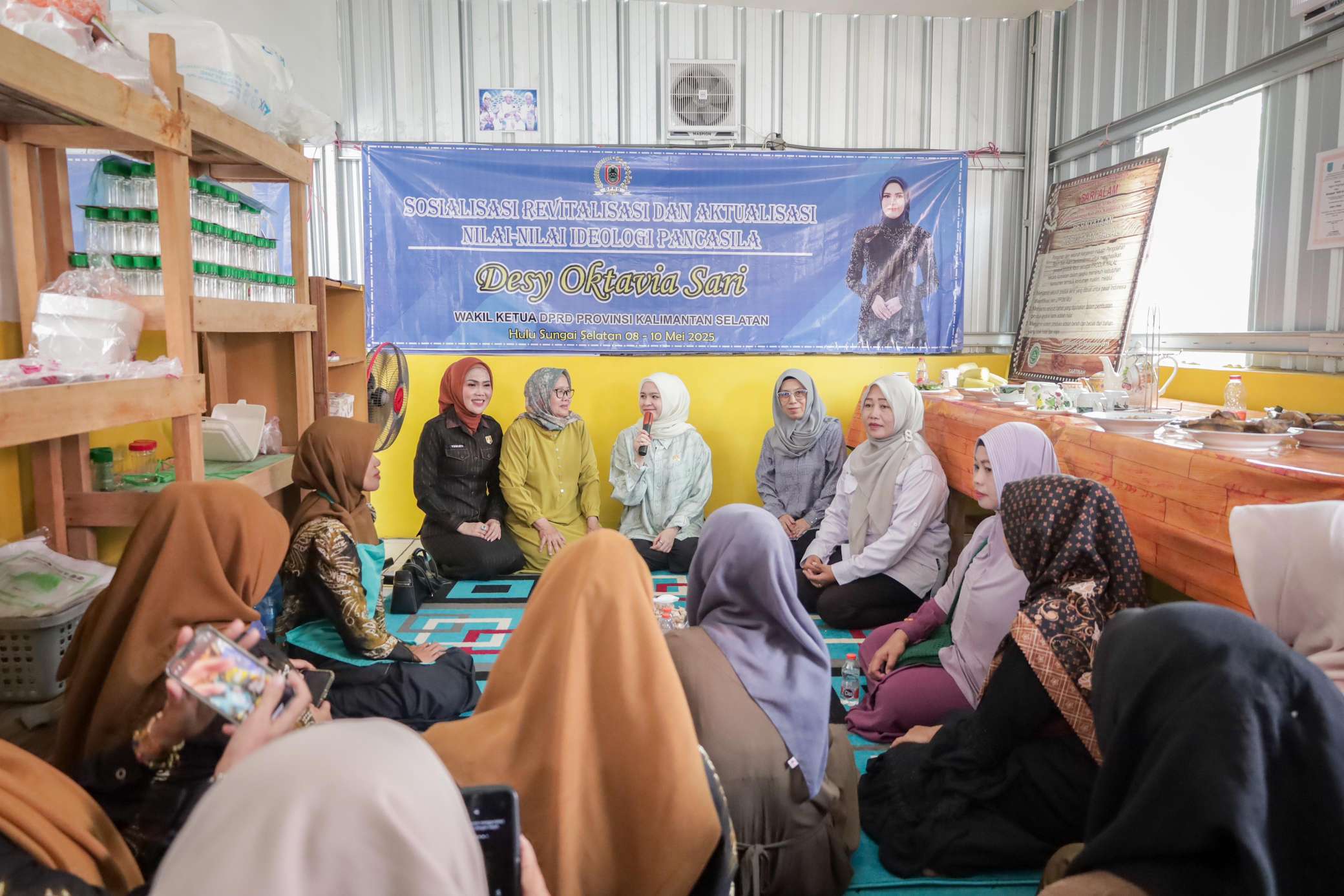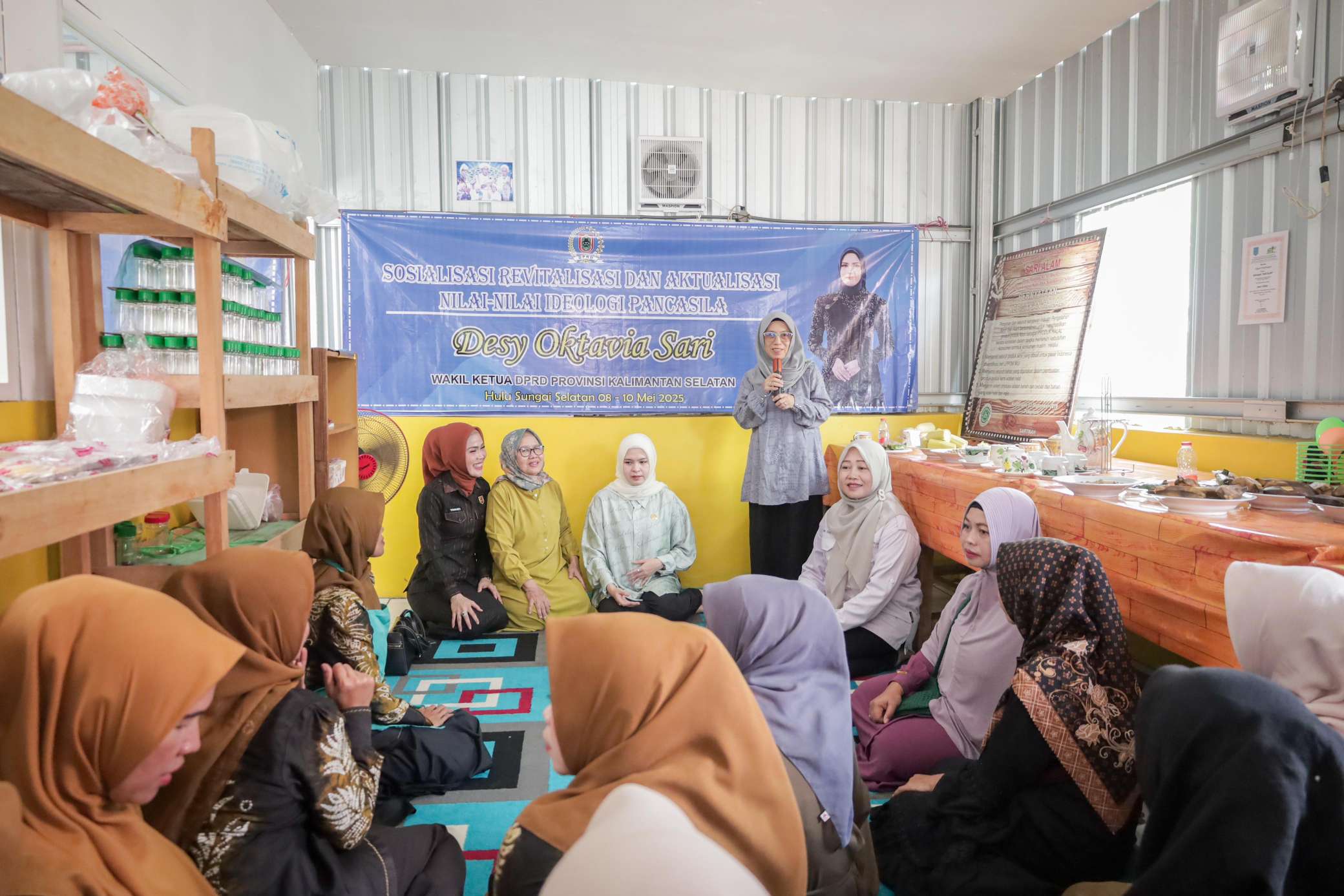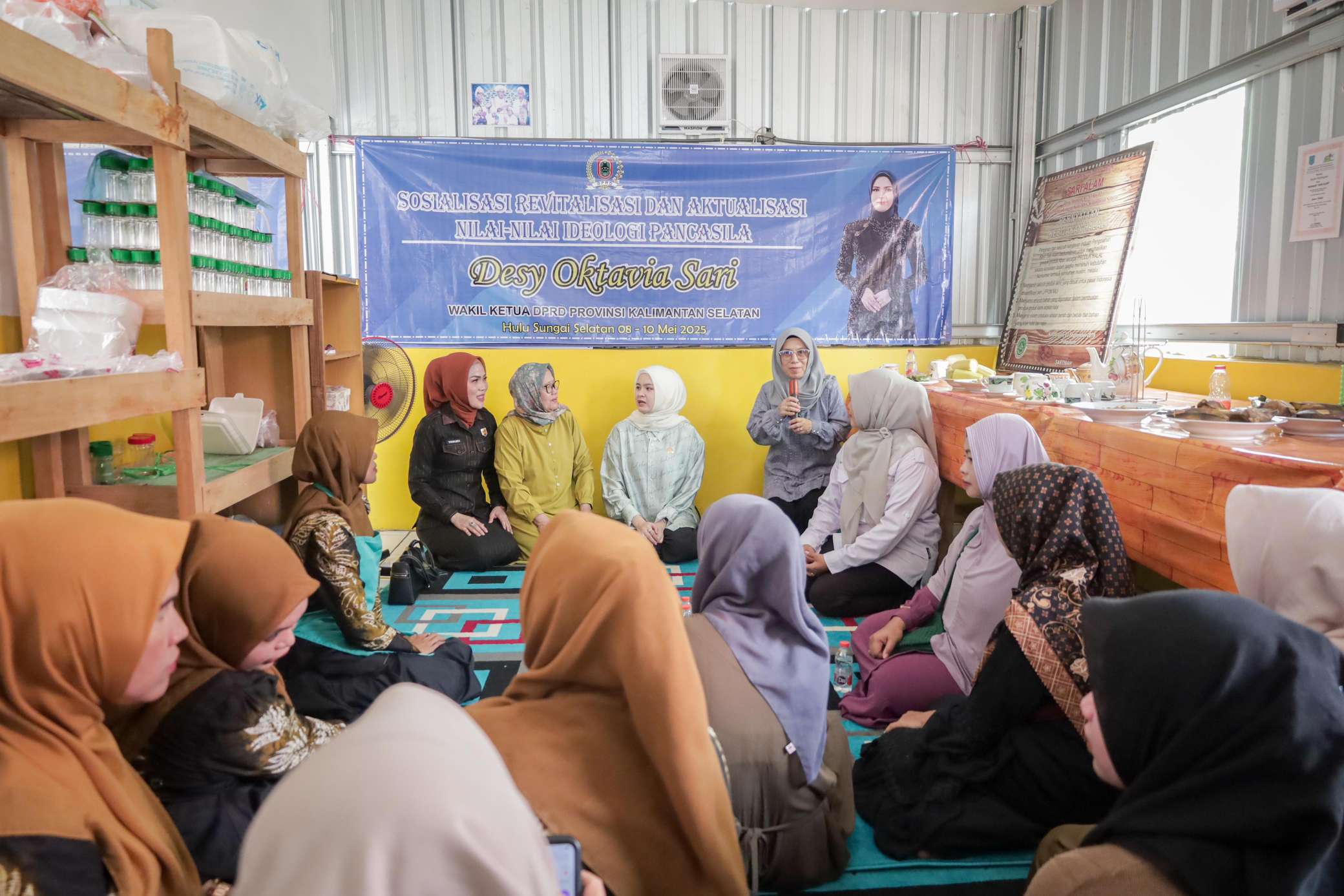 HSS – Wakil Ketua DPRD Provinsi Kalimantan Selatan , Desy Oktavia Sari, menggelar Sosialisasi Revitalisasi dan Aktualisasi Nilai-Nilai Ideologi Pancasila (SOSREV) di Kecamatan Telaga Langsat, Kabupaten Hulu Sungai Selatan, Jumat (9/5/25). Kegiatan ini menyasar puluhan peserta, mayoritas ibu rumah tangga, sebagai bagian dari upaya membumikan kembali semangat Pancasila dalam kehidupan sehari-hari.