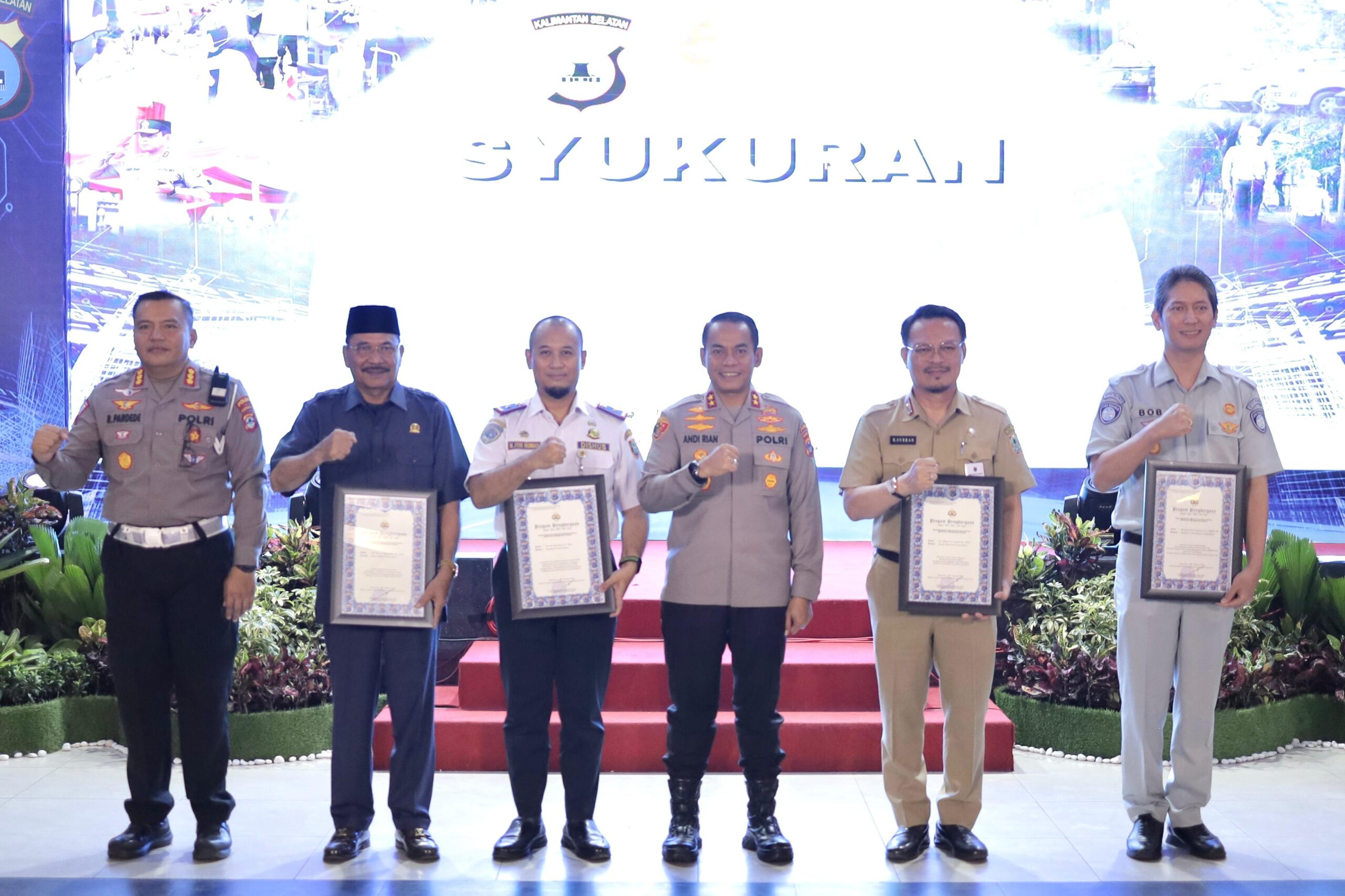 Banjarmasin – Ketua DPRD Kalimantan Selatan (Kalsel) DR. (HC). H. Supian HK, S.H., M.H., terima penghargaan dari Kapolda Kalsel Irjen. Pol. Andi Rian Djajadi S.I.K atas inisiasi dukungan kepada program Kepolisian Republik Indonesia Polda Kalsel dalam pengadaan Elektronic Traffic Law Enforcement (ETLE) di wilayah Kabupaten dan kota yang ada di Kalsel.