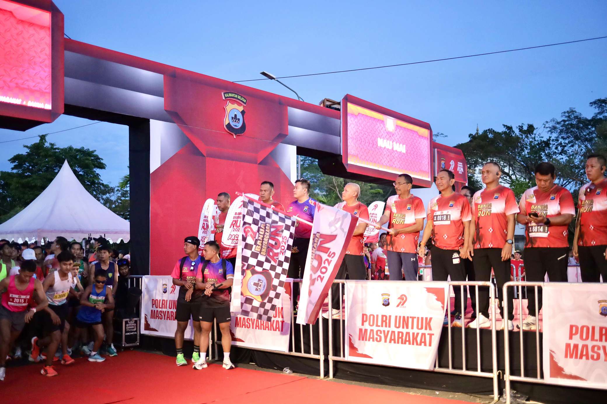 Banjarbaru – Ketua DPRD Provinsi Kalimantan Selatan (Kalsel) H. Supian HK bersama Kepala Kepolisian Daerah (Kapolda) Kalsel Irjen. Pol. Rosyanto Yudha Hermawan secara resmi mengibarkan bendera tanda dimulainya Bhayangkara Run 2025 di Halaman Mako Polda Kalsel pada Sabtu (21/6) Pagi.