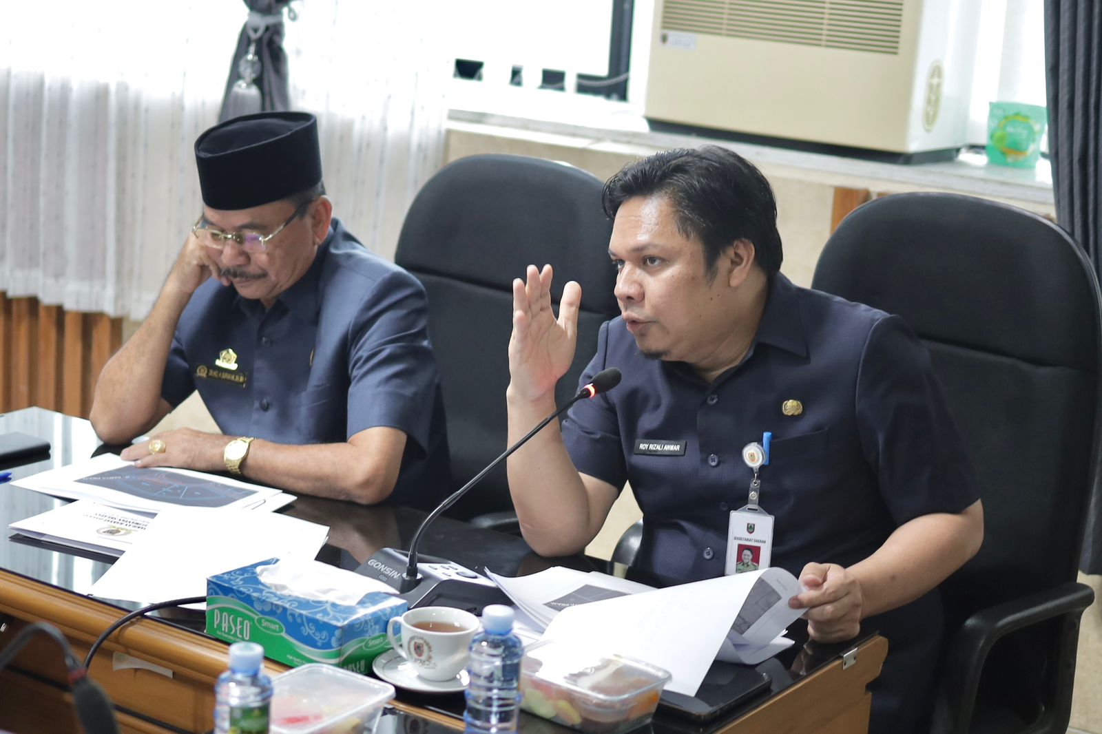 Banjarmasin – Ketua Dewan Perwakilan Rakyat Daerah (DPRD) Provinsi Kalimantan Selatan (Kalsel), Dr. (H.C.) H. Supian HK, S.H., M.H., bersama dengan Sekretaris Daerah (Sekda) Provinsi Kalsel, Ir. Roy Rizali Anwar, S.T., M.T., memimpin Rapat Dengar Pendapat (RDP) dengan Komisi I DPRD Kalsel mengenai sengketa lahan pembangunan perkantoran DPRD Kalsel di Banjarbaru, pada Rabu (10/07) pagi.