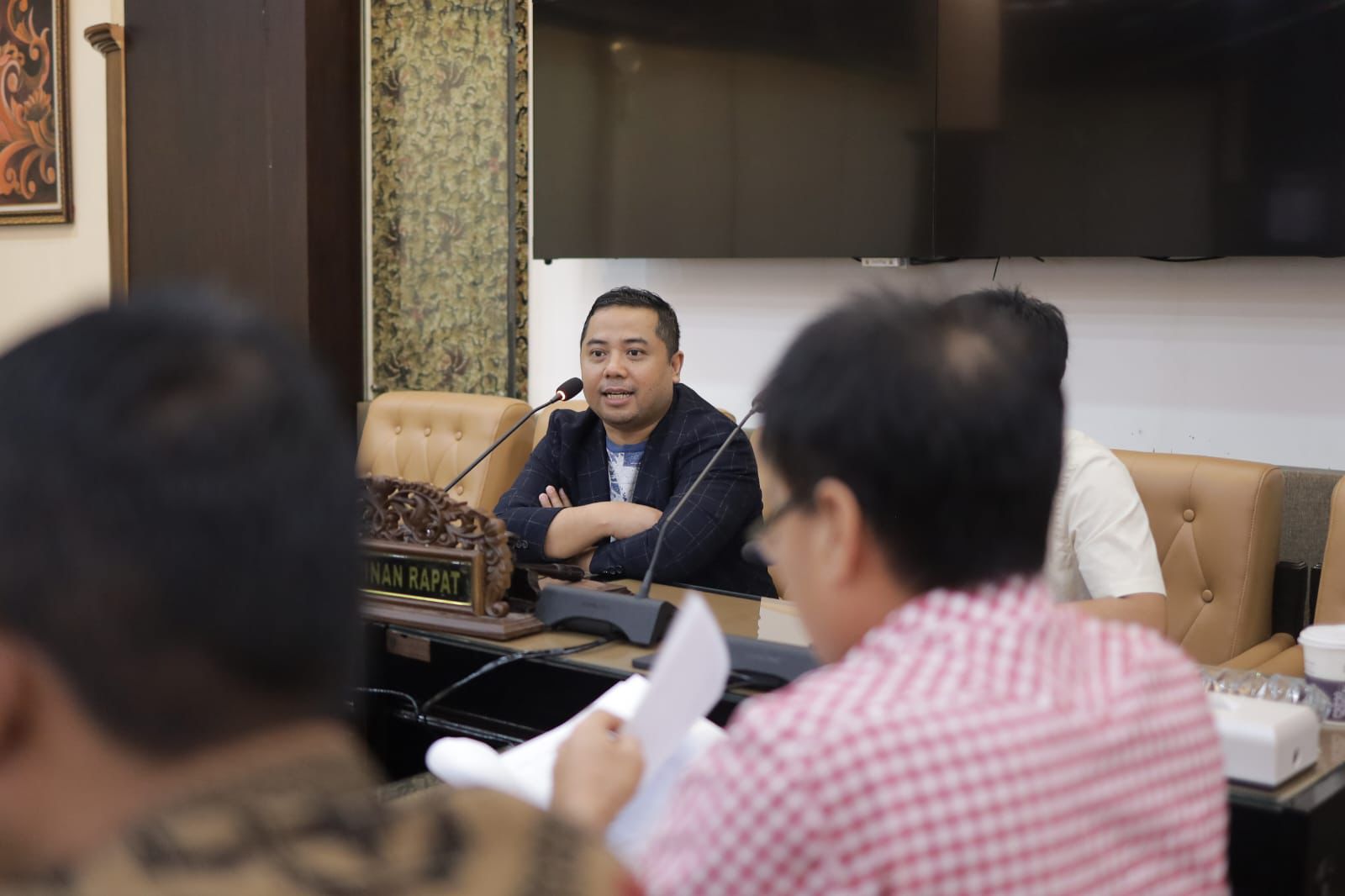 Kedatangan Rombongan Komisi I disambut dengan hangat Anggota DPRD Jawa Timur Ubaidillah di ruang Rapat Badan Musyawarah, Ketua Komisi I Rais Ruhayat menjelaskan tujuan datang ke DPRD Provinsi Jawa Timur selain untuk menggali informasi, Rais juga mengatakan alasannya memilih Jawa Timur sebagai tempat kunjungannya.