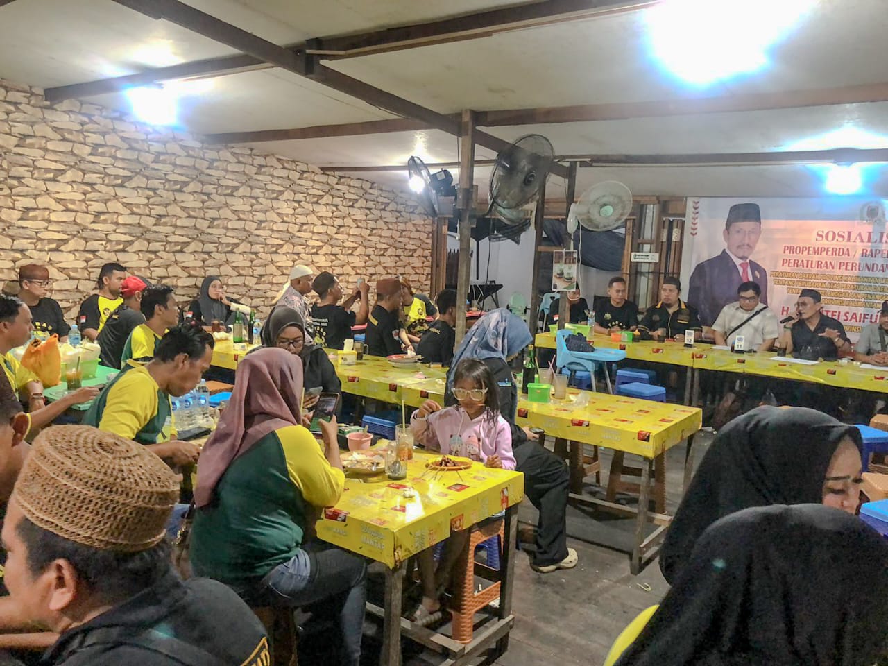 Barito Kuala – Ketua Komisi IV DPRD Provinsi Kalimantan Selatan (Kalsel), H. M. Lutfi Saifuddin, S.Sos., dalam acara Sosialisasi Peraturan Daerah (Sosper) bahas Perda No. 6 Tahun 2017 Tentang Perubahan Atas Peraturan Daerah No. 12 Tahun 2011 Tentang Penyelenggaraan Penanggulangan Bencana Di Provinsi Kalimantan Selatan di Warung Soto Kuin Pa Haji Atas Jembatan, Handil Bakti, rabu (05/06) malam.