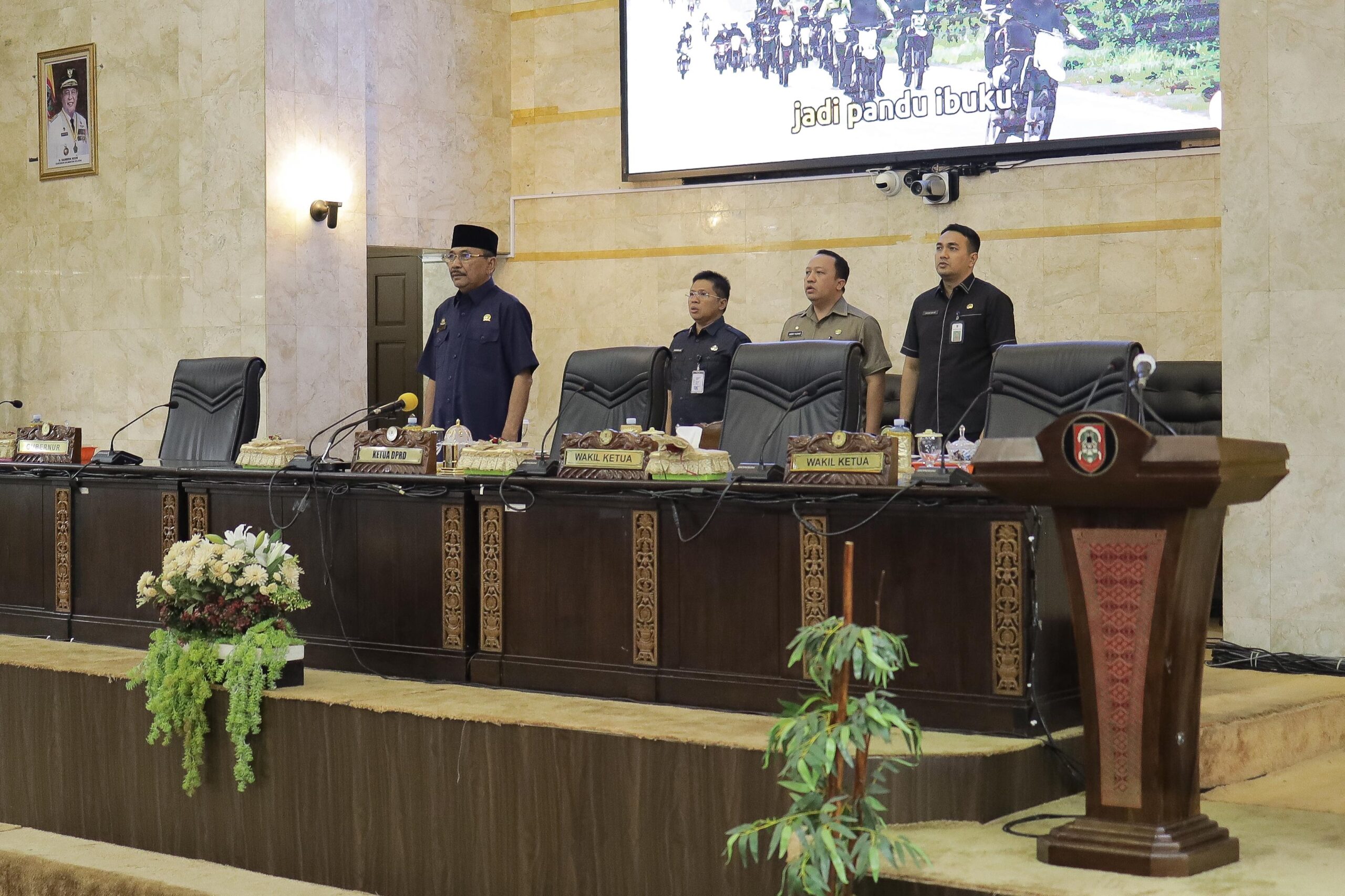 “Anak Sulung Pipinya Merona, Membawa Seledri Beserta Buah Kurma. Masa Sidang Pertama Sudah Dibuka, Kinerja Dewan Menjadi Fokus Utama.” ucap Dr. (H.C.) H. Supian HK., S.H., M.H. menutup Rapat Paripurna kali ini dengan pantun yang menyiratkan sebuah komitmen DPRD Provinsi Kalsel untuk bekerja secara maksimal untuk kepentingan masyarakat dan banua.
