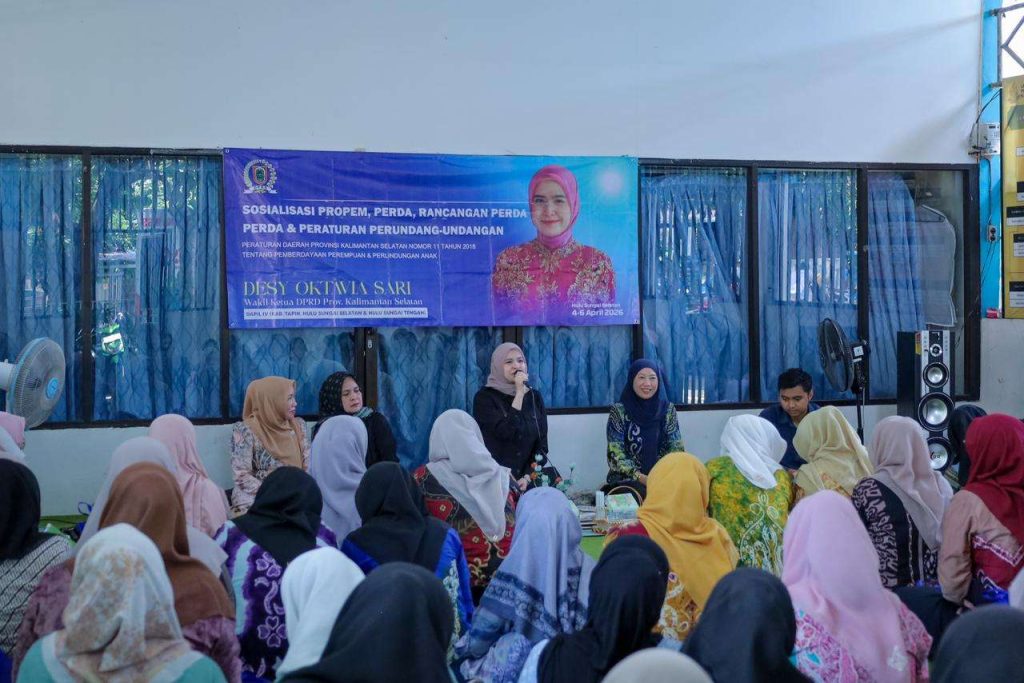 Hulu Sungai Selatan – Wakil Ketua DPRD Provinsi Kalimantan Selatan (Kalsel), Desy Oktavia Sari, menggelar Sosialisasi Peraturan Daerah (SOSPER) di Desa Tenaga Langsat, Kabupaten Hulu Sungai Selatan (HSS), Senin (6/4/2026). Dalam kegiatan tersebut, ia didampingi narasumber untuk memaparkan Peraturan Daerah (Perda) Nomor Tahun 2017 tentang Budaya Banua dan Kearifan Lokal, dengan menekankan relevansinya terhadap sektor pertanian masyarakat desa.