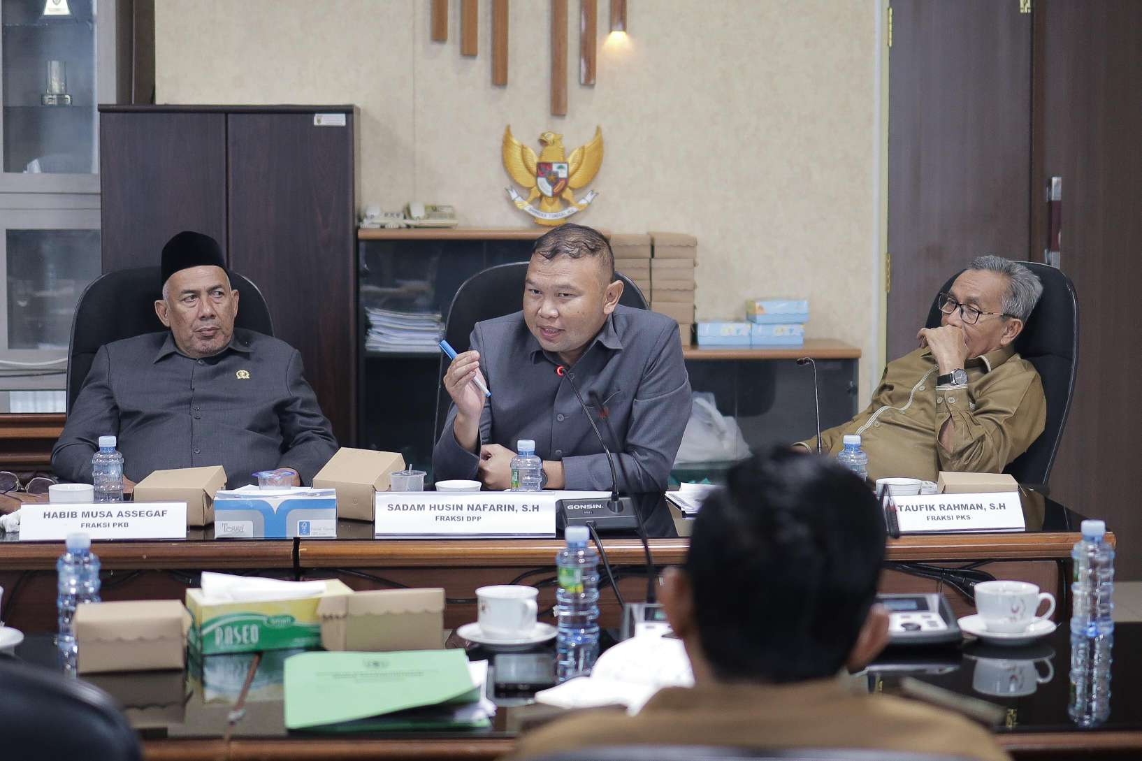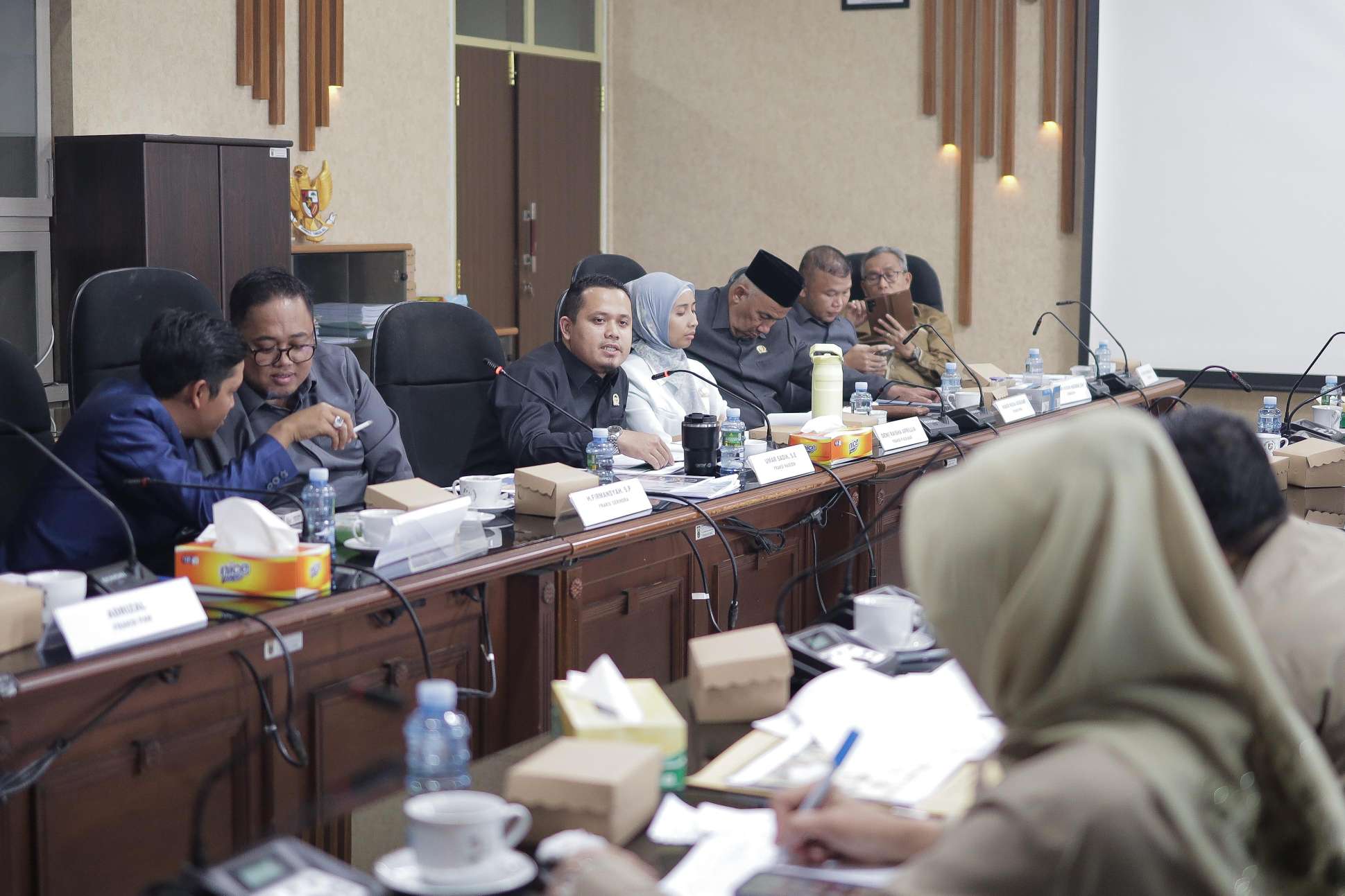 Total ada 14 lembaga mitra kerja bergantian dalam tiga sesi melakukan diskusi dan pendalaman terhadap isi pembahasan, dipimpin langsung oleh Ketua Pansus, Firman Yusi, S.P. dan didampingi oleh wakil ketua Pansus, Yudistira Bayu Budjang, S.H., M.Kn.