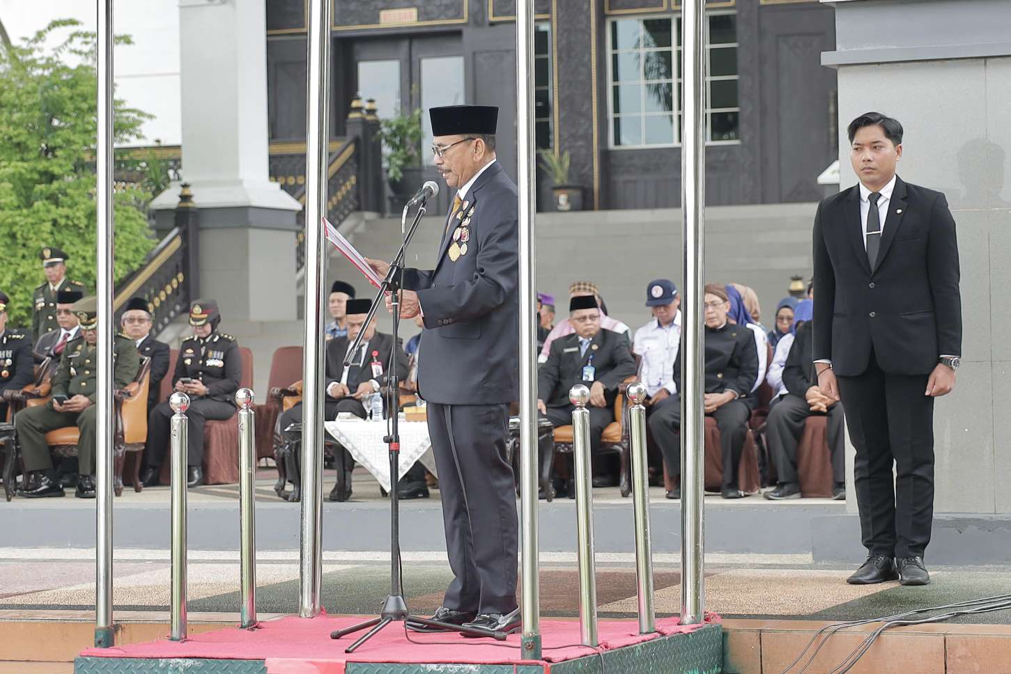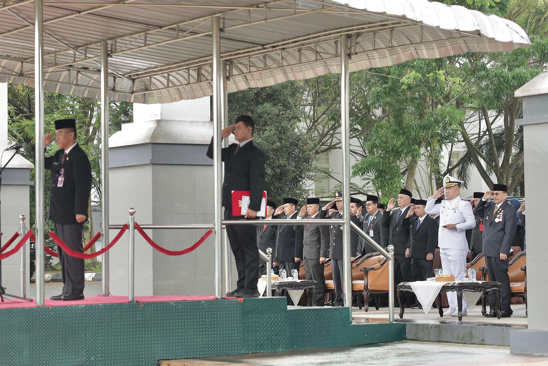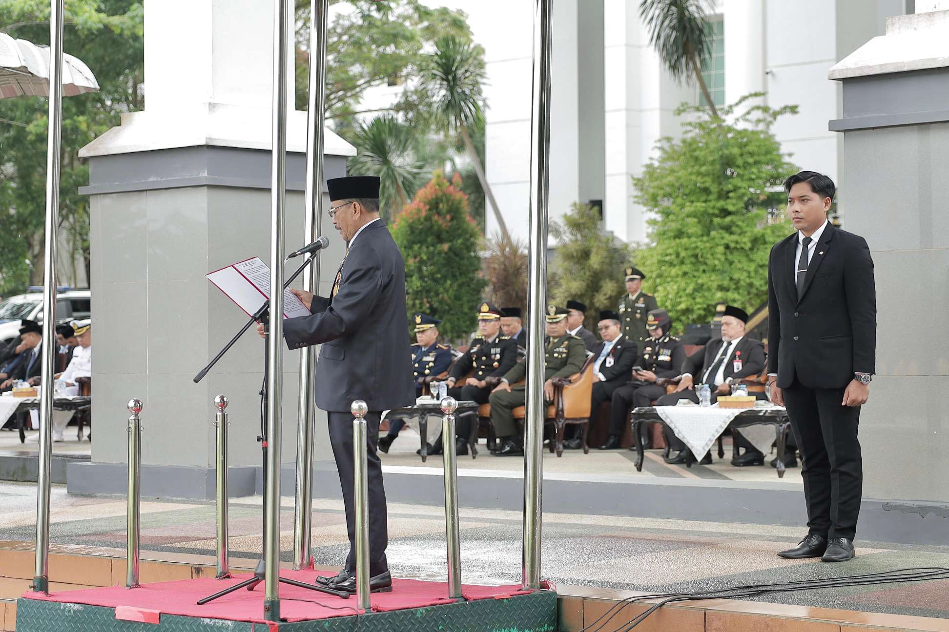 Turut Hadir Komandan Angkatan Laut Banjarmasin Kolonel Laut (P) Ahmad Ahsan, S.E., M.Tr.Hanla, M.M., Komandan Angkatan Udara Sjamsudin Noor, Kolonel PNB Suparjo, S.T., M.M., M.Han., Upacara juga diikuti oleh Seluruh Kepala SKPD Jajaran Pemprov Kalsel, unsur ASN, TNI, Polri, dan instansti terkait lain.