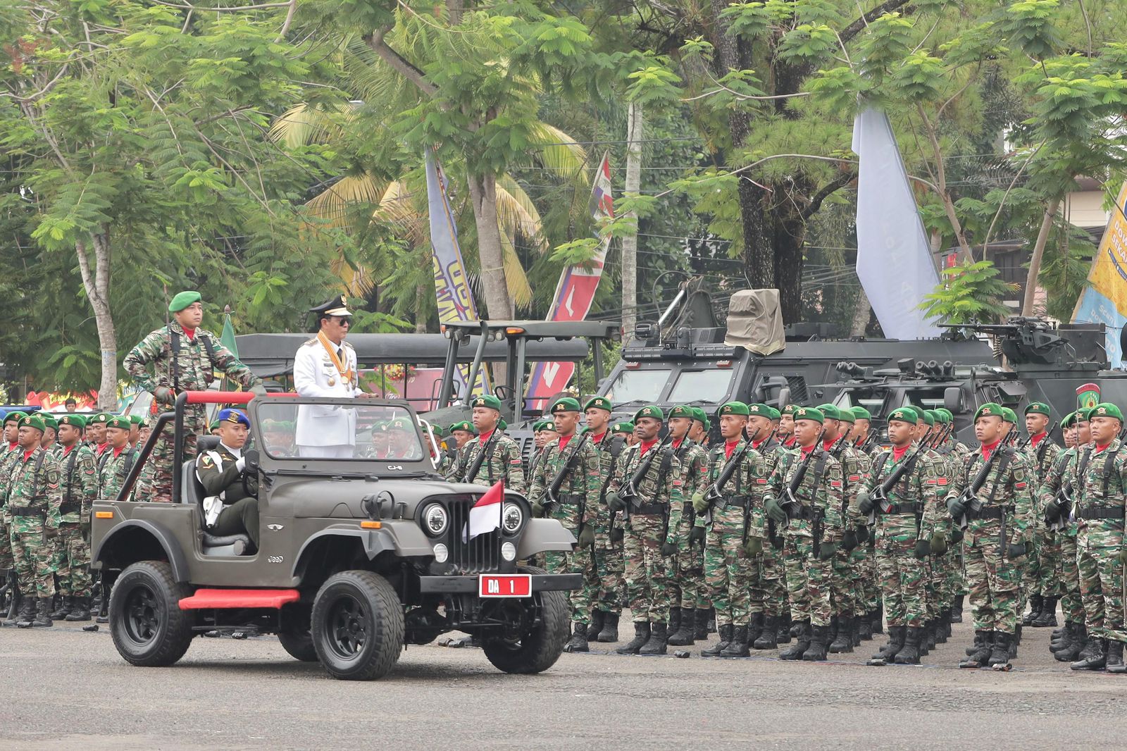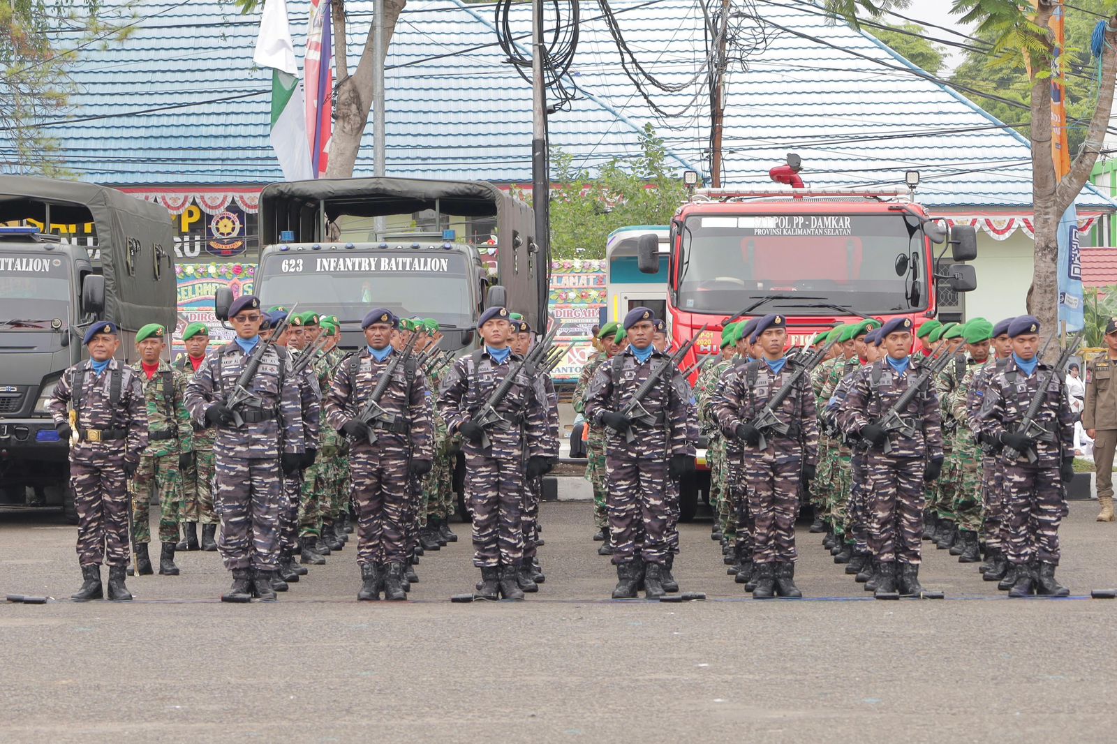 Bertindak sebagai Inspektur Upacara Gubernur Kalsel H. Sahbirin Noor, peringatan HUT TNI ke 79 kali ini mengusung tema “TNI Modern Bersama Rakyat Siap Mengawal Suksesi Kepemimpinan Untuk Indonesia Maju”.