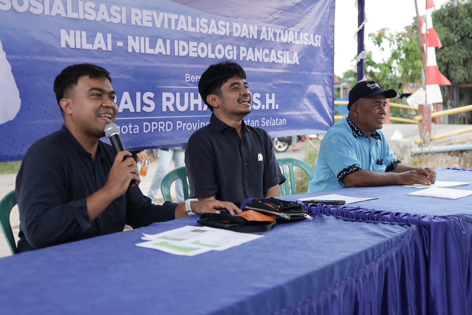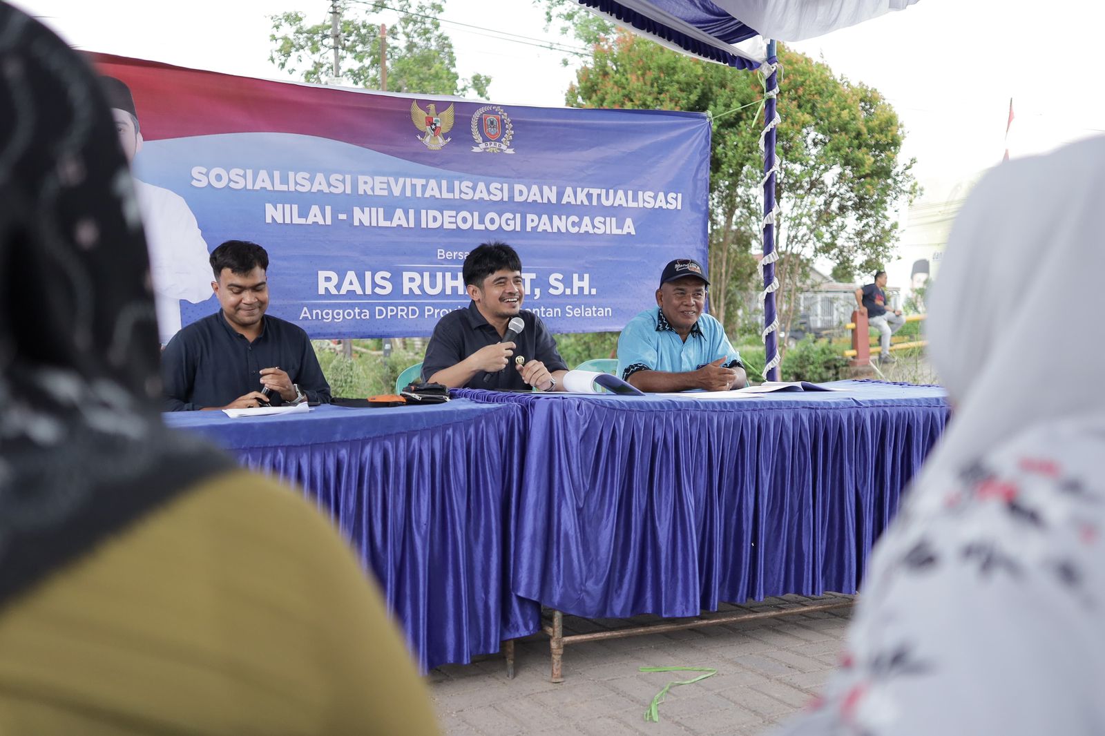 Tidak sendirian, H. Rais dibersamai oleh Rizki Rahmatillah, S.H., M.H. sebagai narasumber. Senada dengan apa yang ia sampaikan, Rizki juga mengimbau agar masyarakat mampu membumikan Pancasila, sebab, tegasnya, bahwa Pancasila merupakai dasar negara Indonesia.