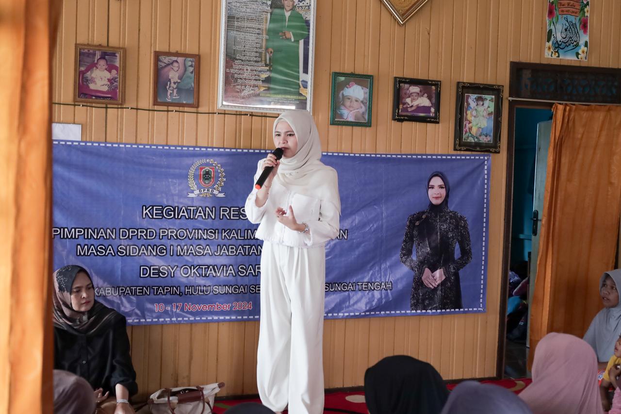 Tapin – Wakil Ketua DPRD Provinsi Kalimantan Selatan (Kalsel), Desy Oktavia Sari, telah melaksanakan reses pertama masa persidangan 2024 di daerah pemilihannya (Dapil 4) meliputi Tapin, Hulu Sungai Selatan (HSS), dan Hulu Sungai Tengah (HST).