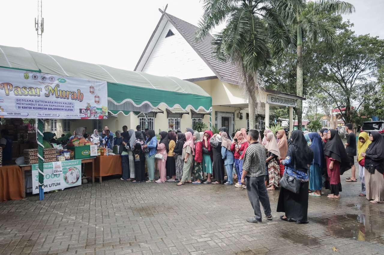 Dalam menekan harga kebutuhan pokok saat bulan ramadhan, Gatriwara Kalimantan Selatan menggelar pasar murah di Kecamatan Banjarmasin Selatan pada Senin (17/03/2025).
