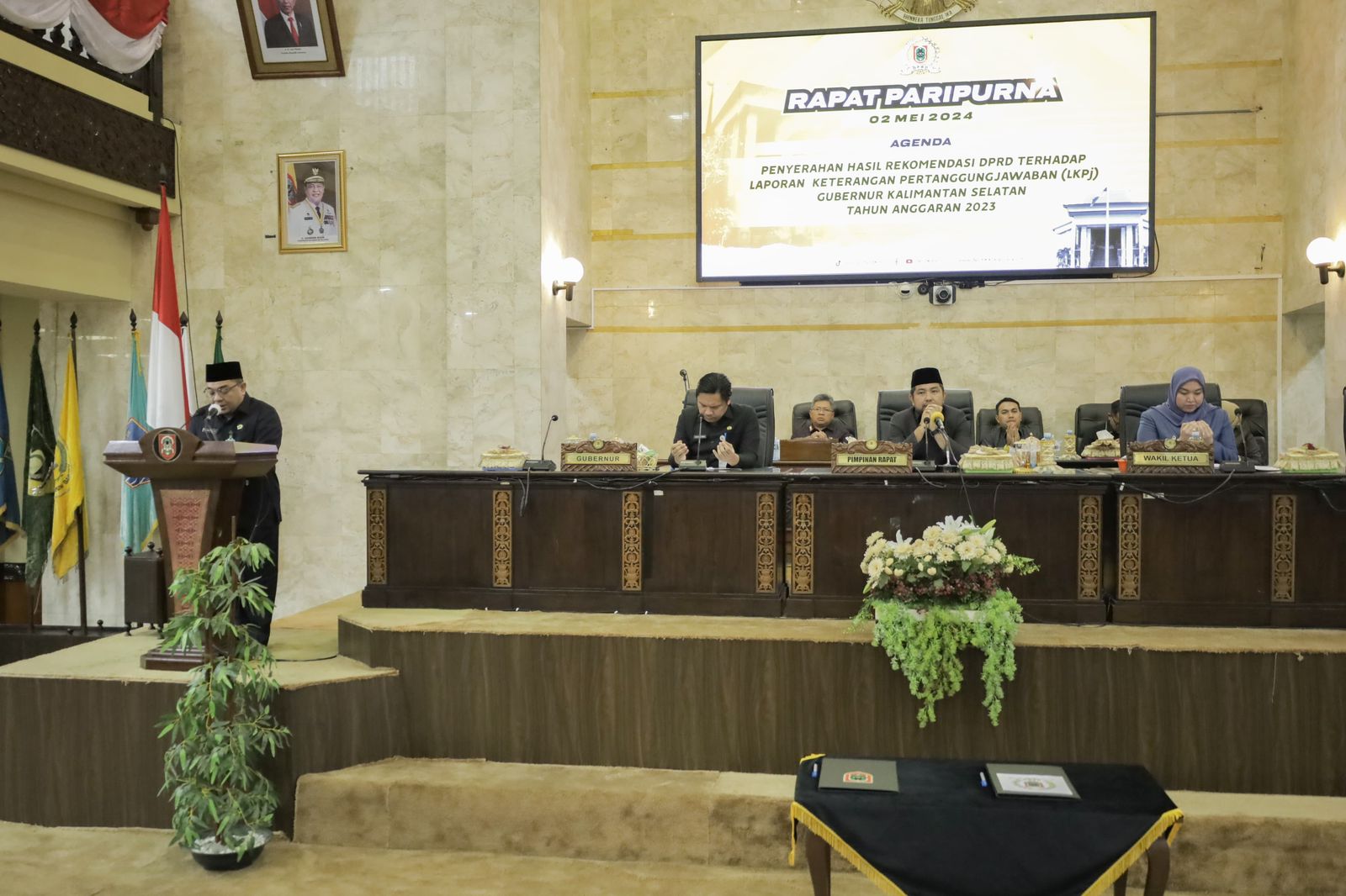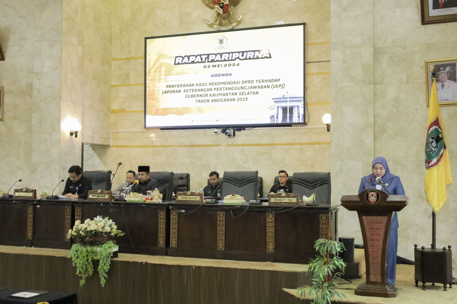 Banjarmasin – Dewan Perwakilan Rakyat Daerah (DPRD) Provinsi Kalimantan Selatan gelar Rapat Paripurna dengan agenda Penyerahan Hasil Rekomendasi DPRD Terhadap Laporan Pertanggungjawaban (LKPj) Gubernur Kalsel Tahun Anggaran 2023 pada Kamis (02/05) 2024.