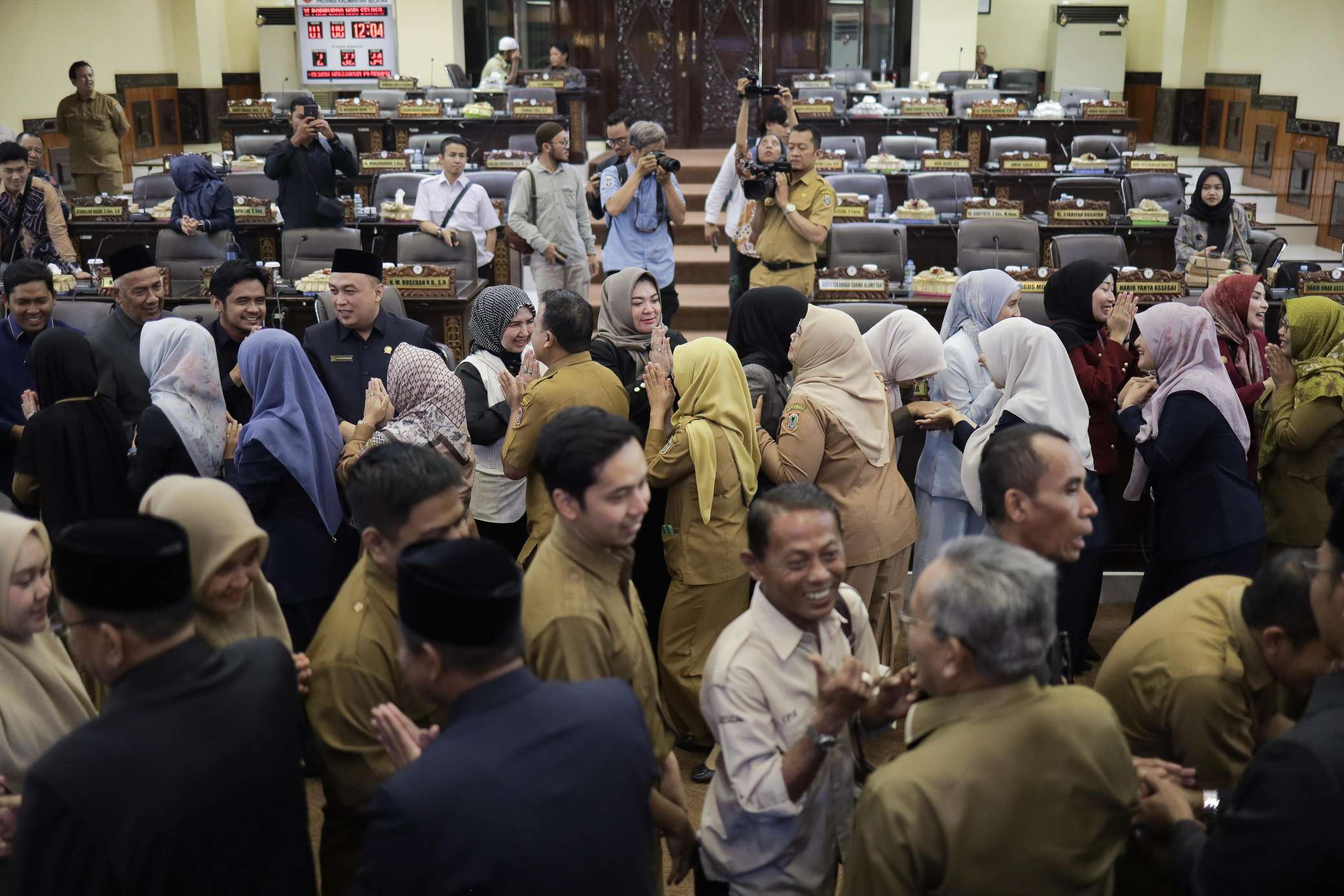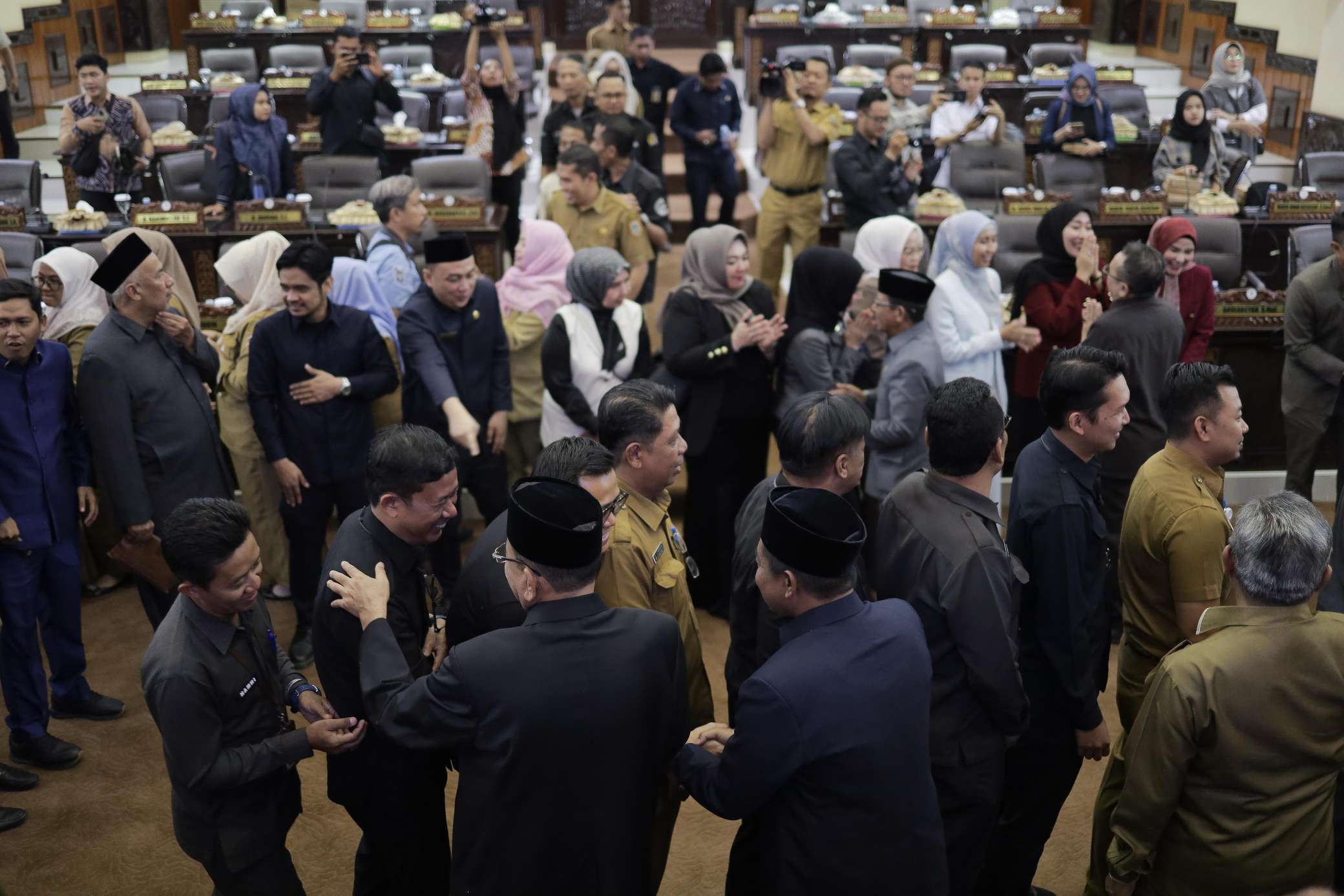 Sementara itu, suasana serupa juga terasa seusai Rapat Paripurna DPRD Provinsi Kalsel yang digelar di Ruang Rapat Paripurna H. Mansyah Addrian. Para pimpinan dan anggota dewan menggelar halalbihalal bersama pegawai, staf sekretariat, serta wartawan yang tergabung dalam press room DPRD Provinsi Kalsel sebagai mitra kerja.