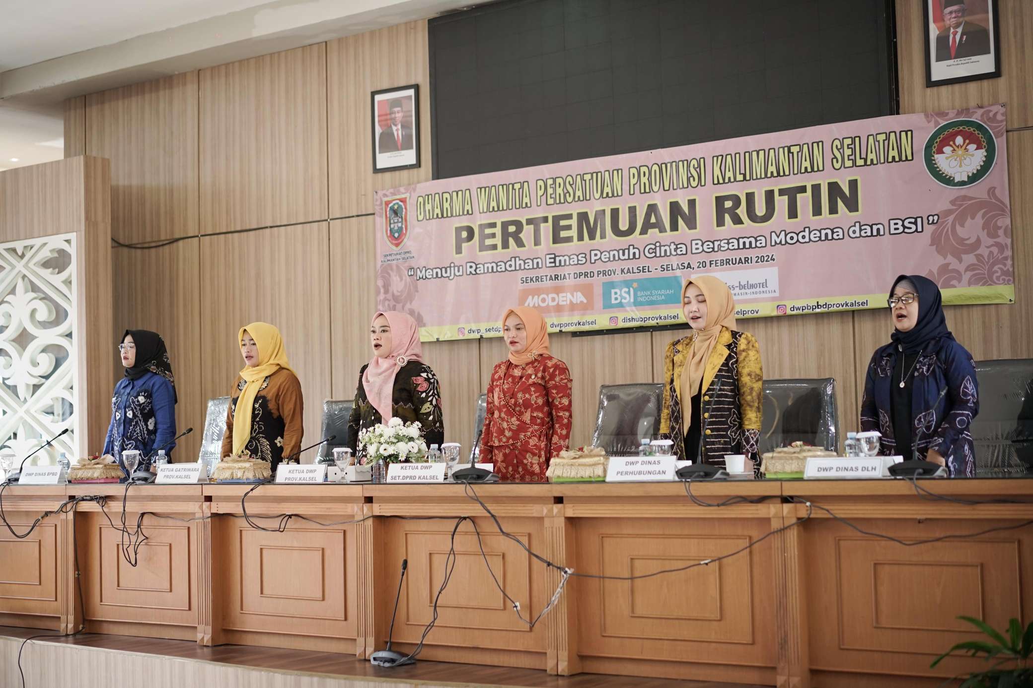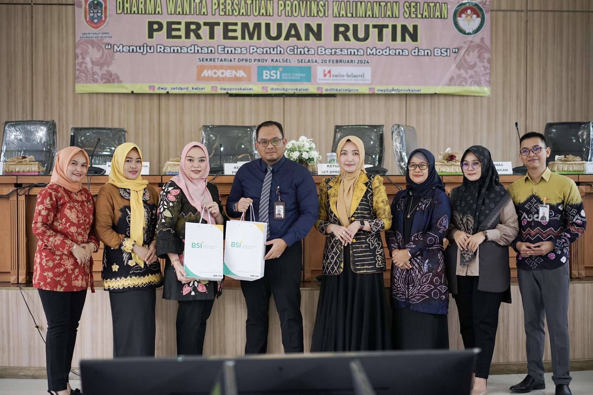 Banjarmasin – Dharma Wanita Persatuan (DWP) Provinsi Kalimantan Selatan (Kalsel) menyelenggarakan pertemuan Rutin Bulanan dengan tema “Ramadhan Emas Penuh Cinta Bersama Modena Dan BSI” bertempat di Gedung B lantai 4, Sekretariat DPRD Provinsi Kalsel. Rabu (20/02) Pagi.