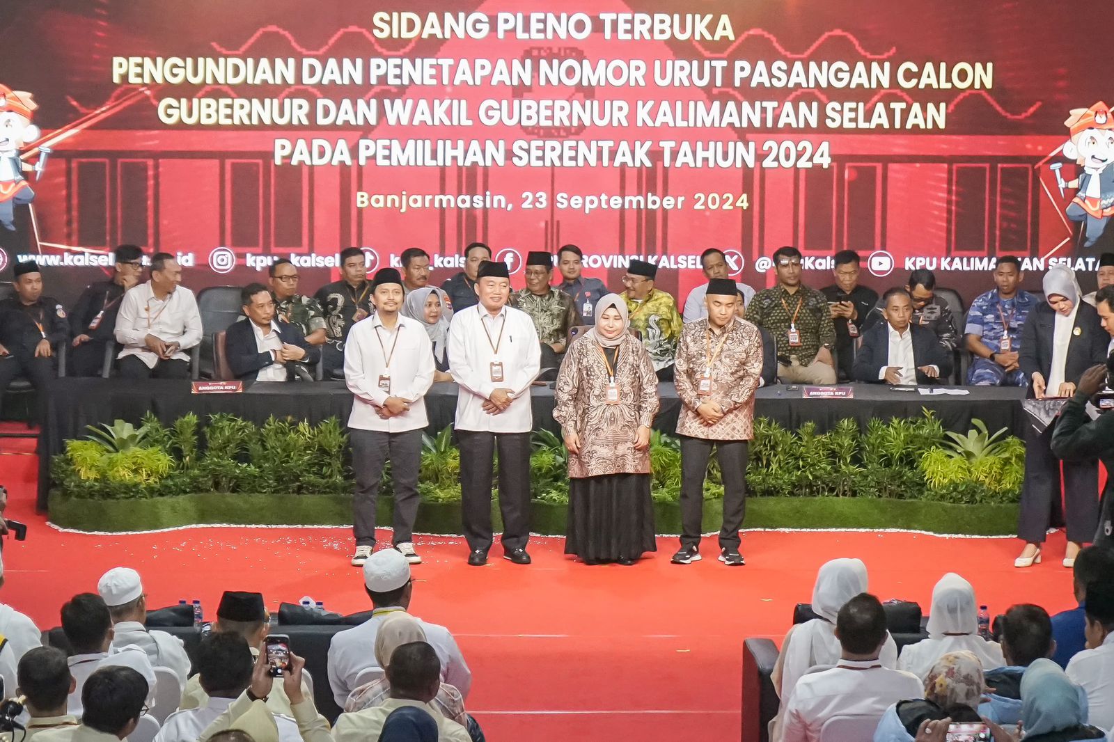Sebelumnya, KPU Kalsel telah menetapkan secara resmi, nomor urut Pasangan Calon (Paslon) Kepala daerah Kalsel yaitu, nomor urut 1 kepada Paslon H. Muhidin dan H. Hasnuryadi Sulaiman Dan nomor urut 2 kepada Paslon Hj. Raudhatul Jannah dan H. Rozanie Himawan Nugraha.