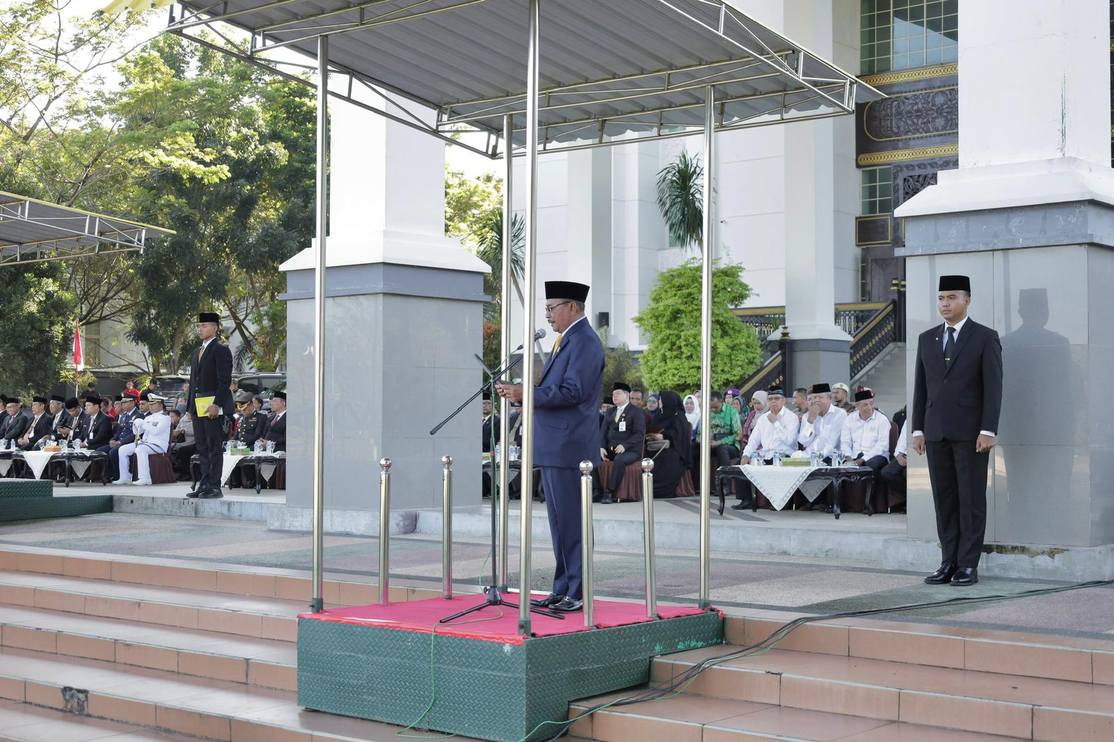 Upacara yang dipimpin langsung oleh Gubernur Kalsel H. Sahbirin Noor tersebut di ikuti oleh jajaran ASN, TNI/POLRI, Akademi, Guru hingga Pelajar dan Mahasiswa.